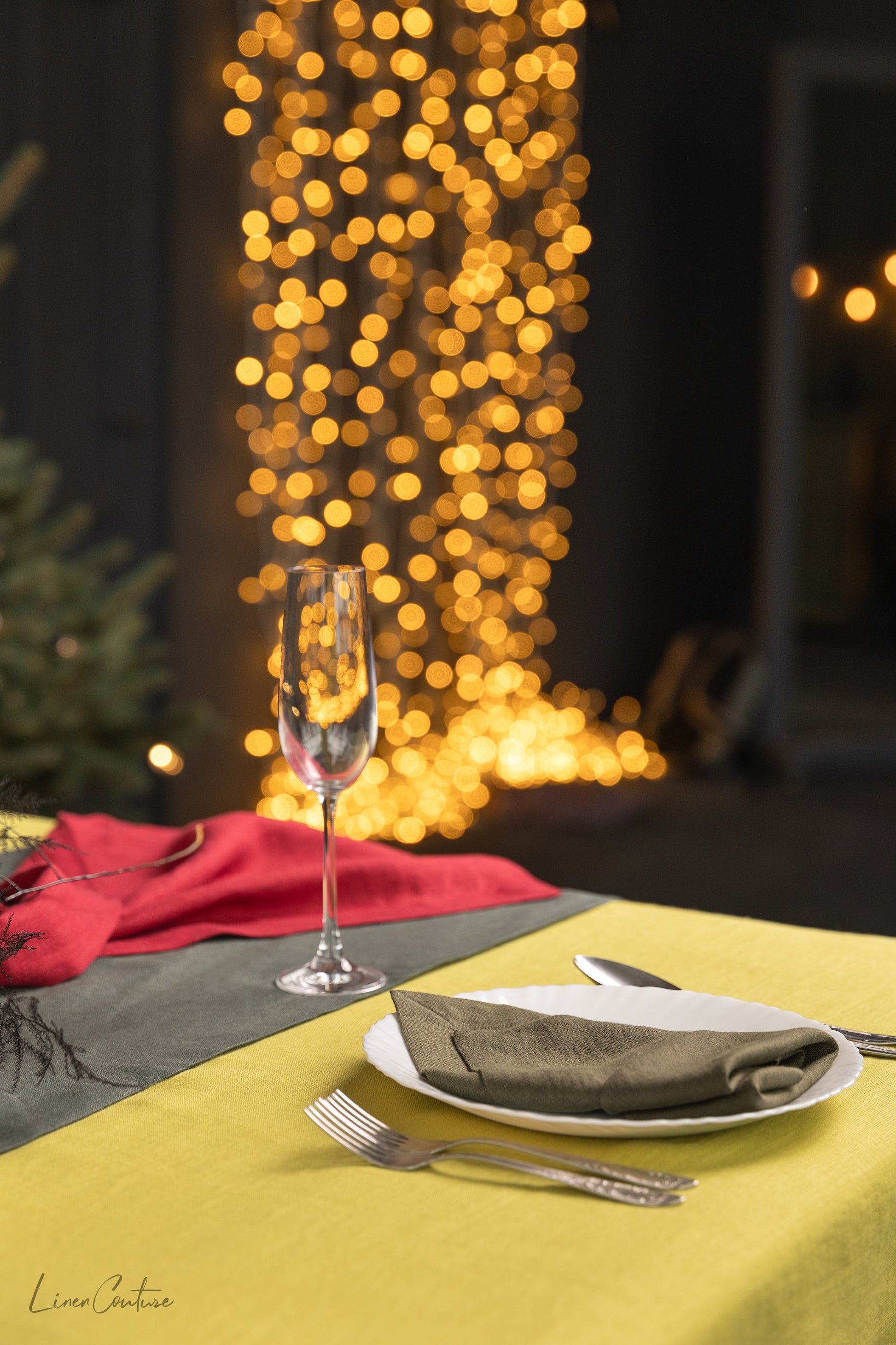 Special dining experience with our exquisite 100% European Linen Natural Tablecloth adorned with signature Linen Couture label, handcrafted from premium European linen. Whether it's a festive Christmas gathering or a special wedding table decor or any celebration, this Natural Linen Tablecloth adds a touch of timeless sophistication to any occasion.