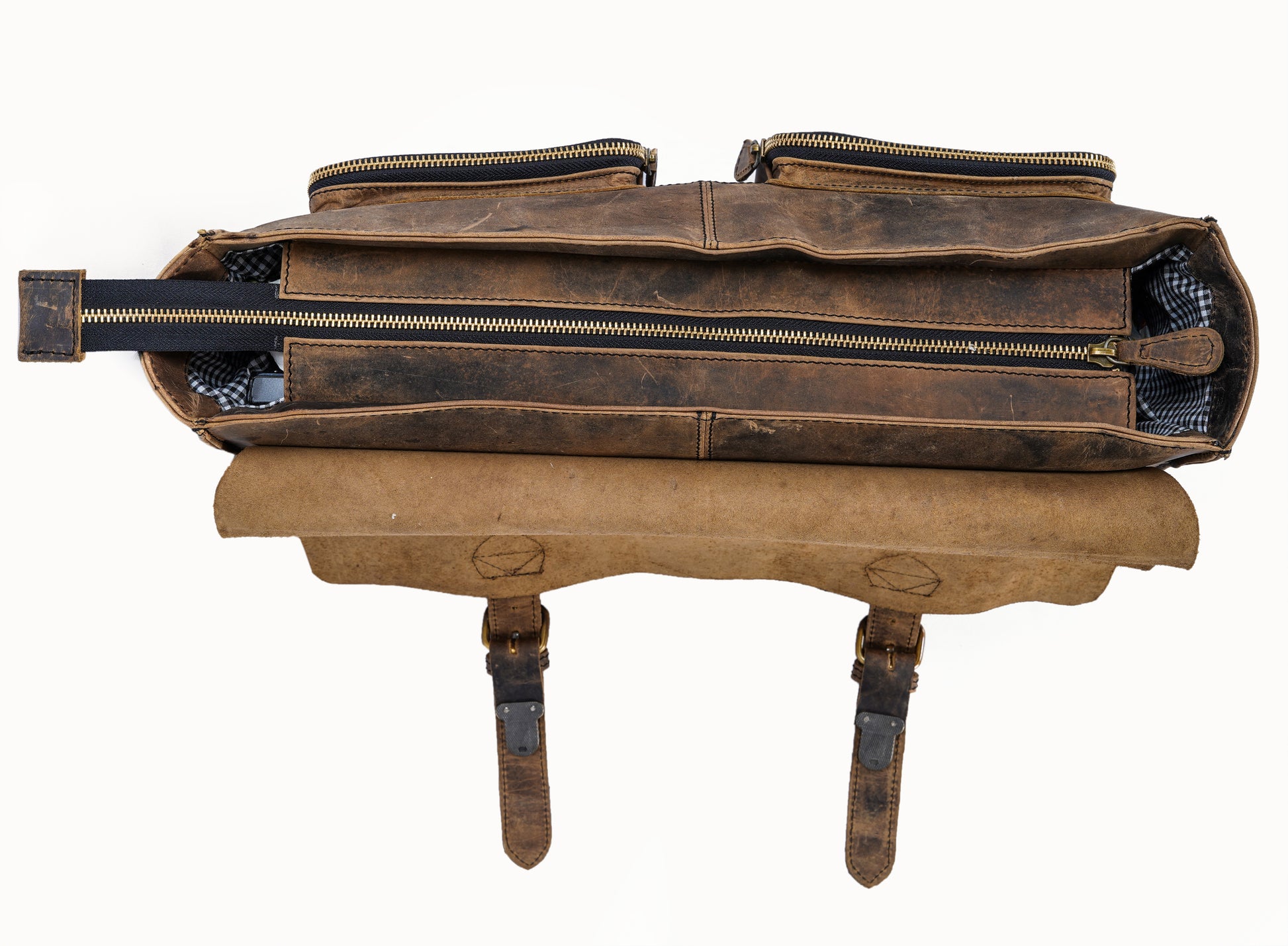Handmade Vintage Leather Messenger Bag With 2 Pocket.