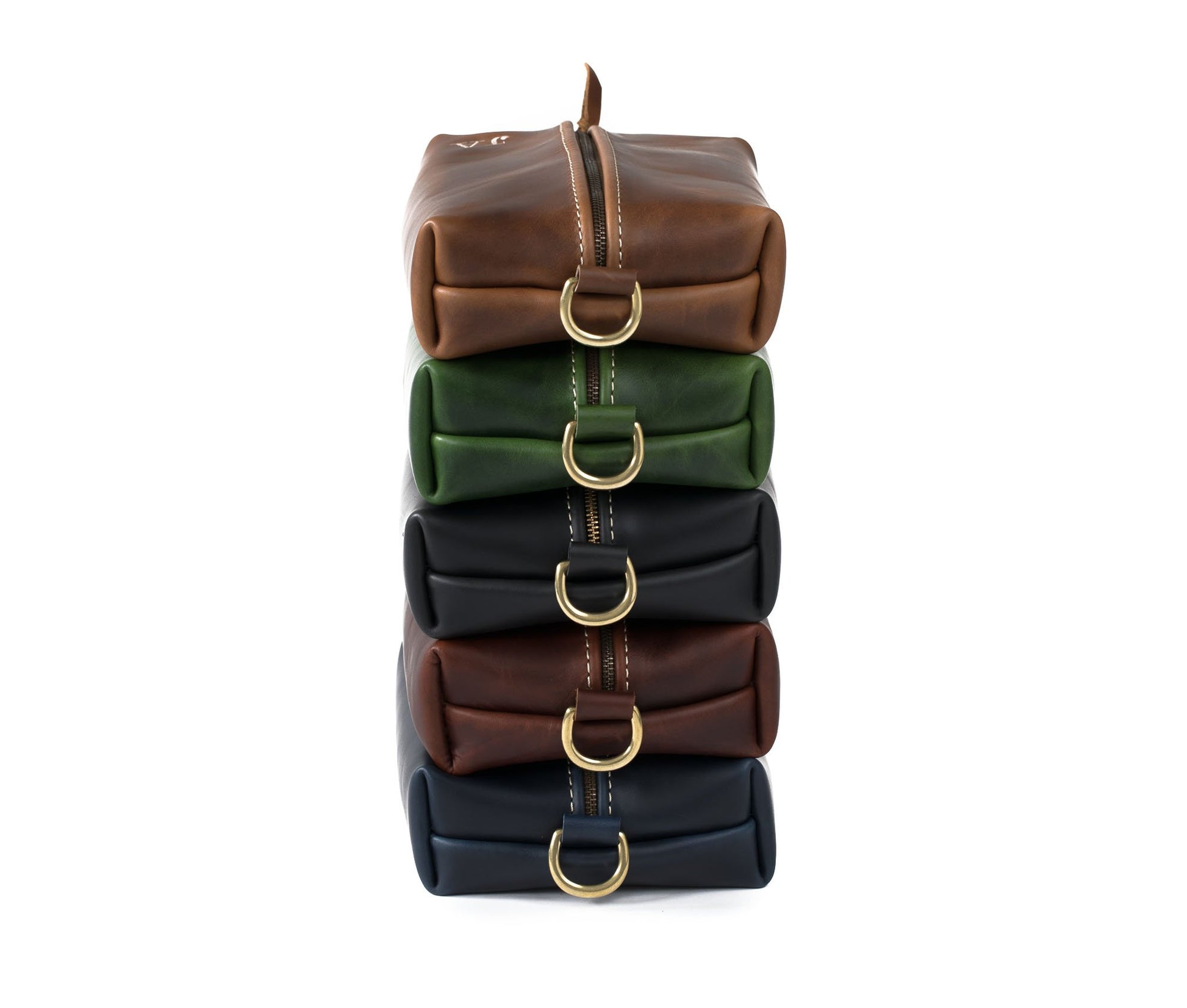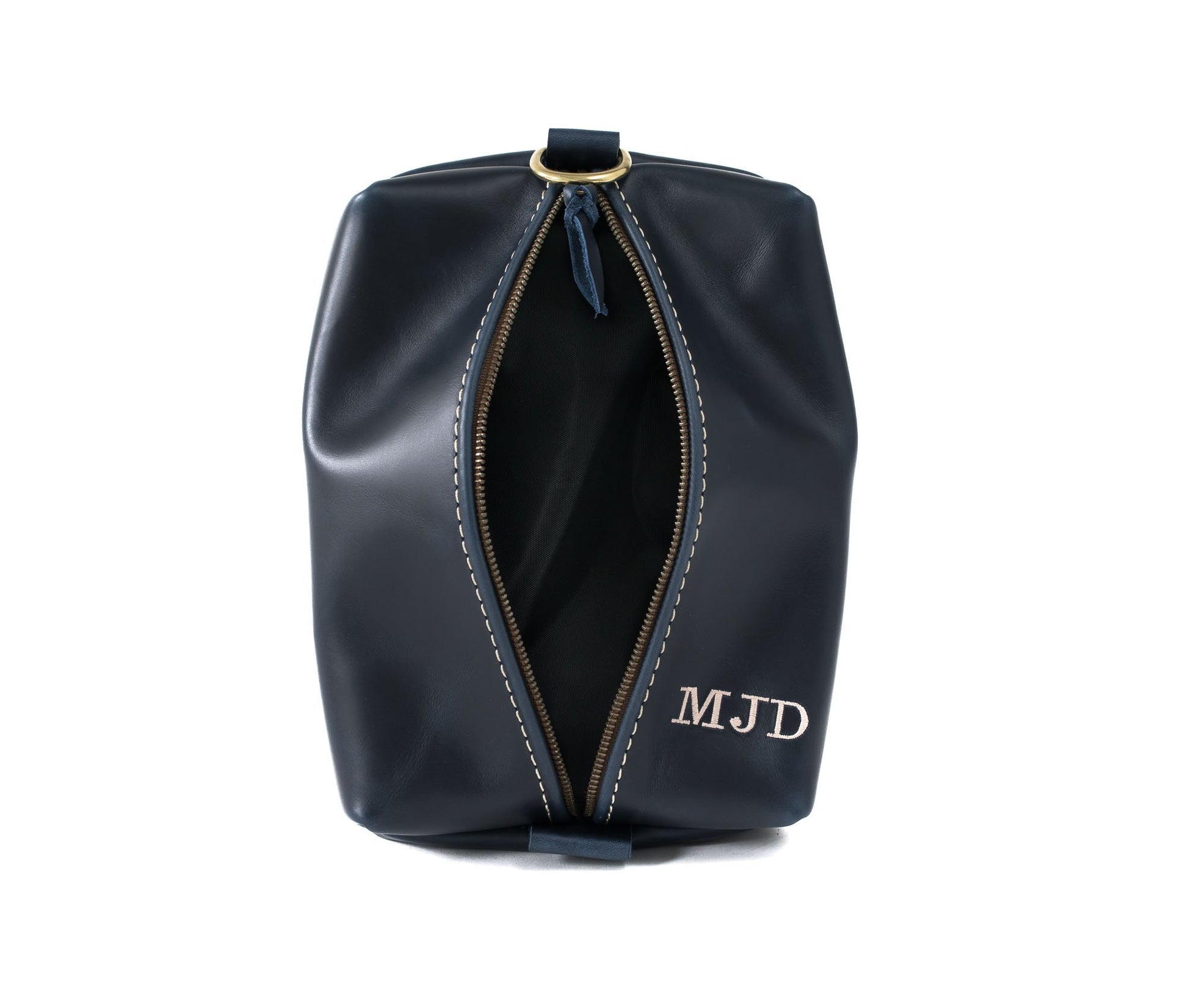 Our Heirloom Toiletry Bag is one our larger, more spacious dopp kit that we offer -- it's going to be a lot wider than our X-Large toiletry bag. Pull tabs run smoothly along the zipper track to seamlessly open and close your travel toiletry bag.