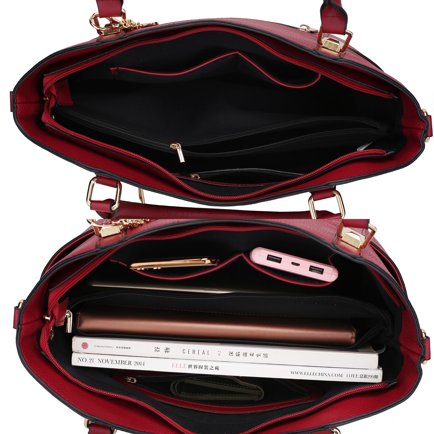 - FEATURE: Design with Luxurious gold tone embellishments. The Sara Tote is everyone's favorite everyday tote, it has a zipper closure making it easy to put in belonging and go. Sara Tote is a one-compartment spacious bag. The Sara Tote has a comfortable top handle and is smooth for holding with gold hardware on the bottom of the handle. The Sara Tote is hand-painted edges, slit pockets on the side of the bag, and a front zipper pocket. Sara Tote has an adjustable and removable crossbody strap, making it easy to adjust to your liking and go.