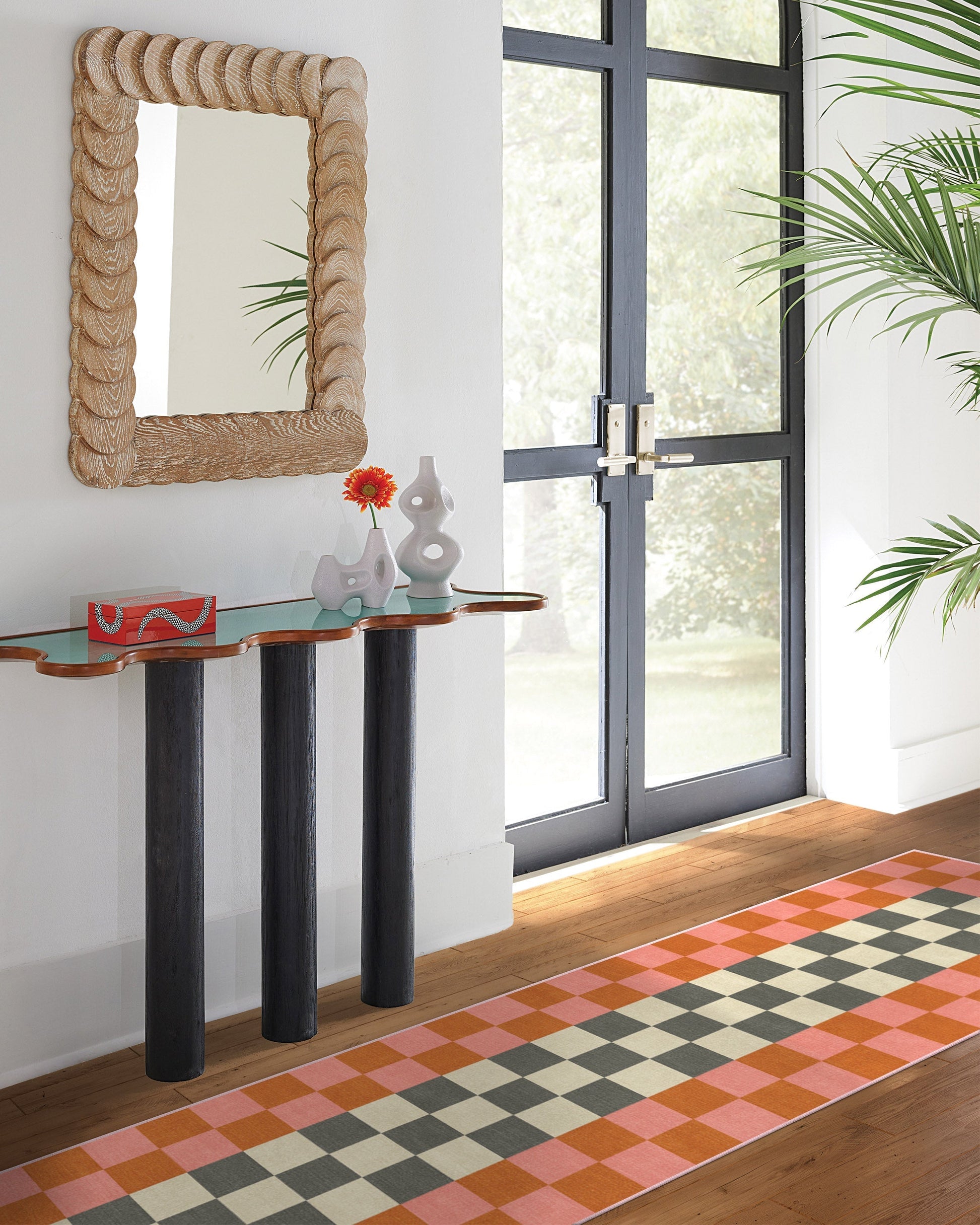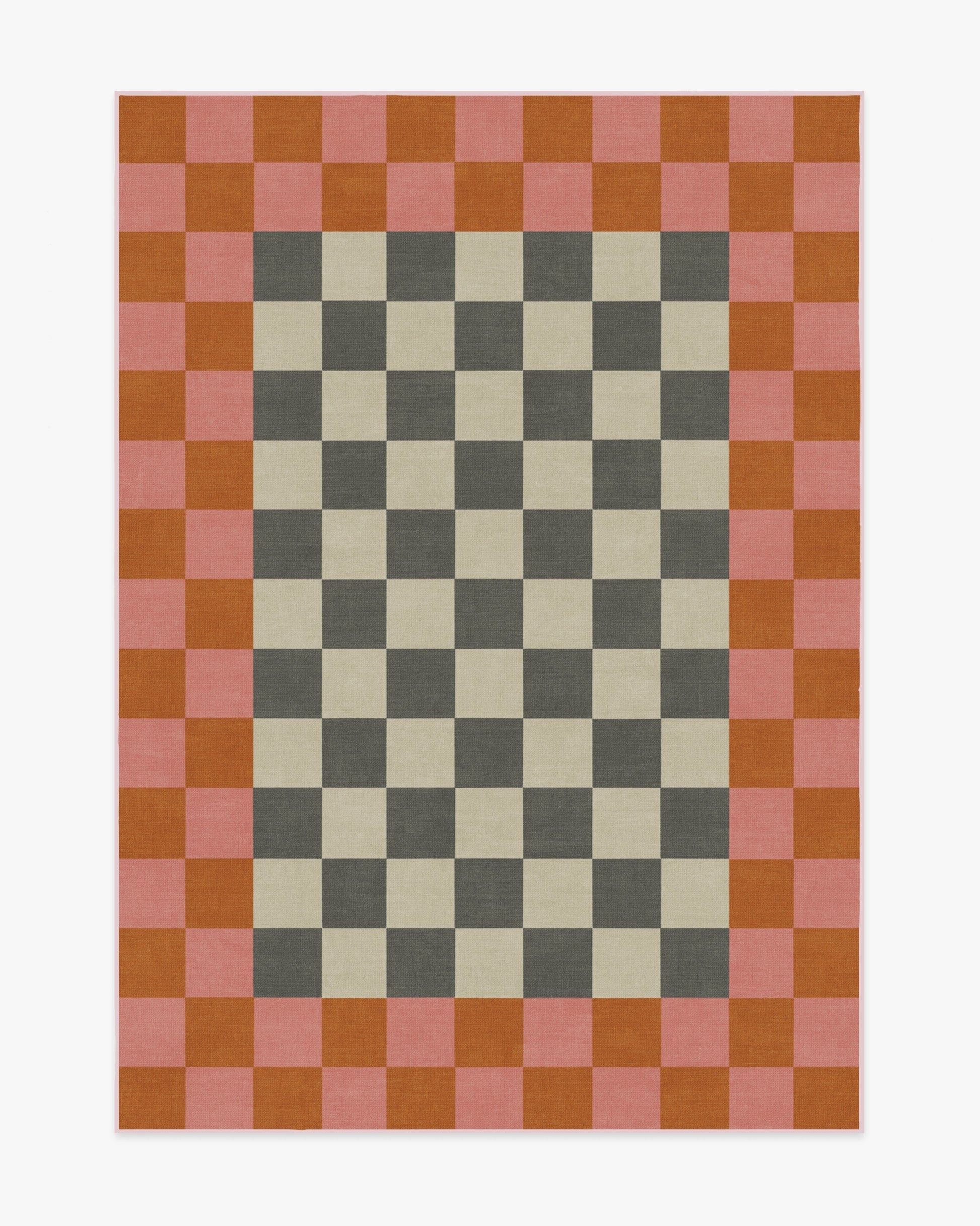 Jonathan Adler Checker Border Pink & Orange Tufted Rug