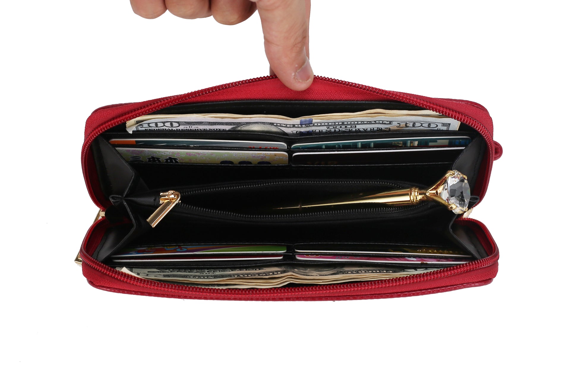 - POCKETS: Interior features a wall zip pocket and 2 slip pockets. Exterior features one back and front zip pockets