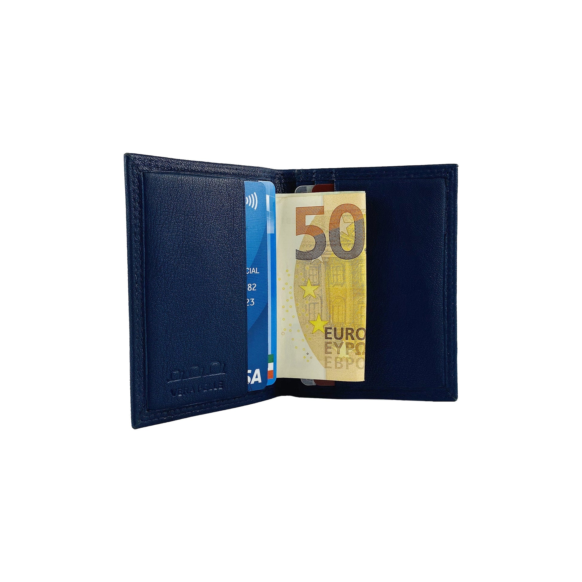 Il Porta Carte di Credito è un prodotto in Vera Pelle disegnato in Italia e realizzato artigianalmente ed interamente con un pellame di primissima qualità. Il colore Blu accentua il suo stile Classico e Elegante e le cuciture in contrasto caratterizzano la ‘freschezza’ di questo modello. Il Design della forma e la chiusura con l’elastico ne garantiscono la praticità e la comodità. Le Dimensioni: cm 9.8 x 8 sono perfette e grazie all’organizzazione con scomparti multipli puoi inserire il Porta carte di credito nel taschino della giacca o dei pantaloni tenendo nello stesso posto tutto quello che ti è necessario con il minimo ingombro. La confezione in Gift Box fondo e coperchio lo rende ideale per fare un regalo.