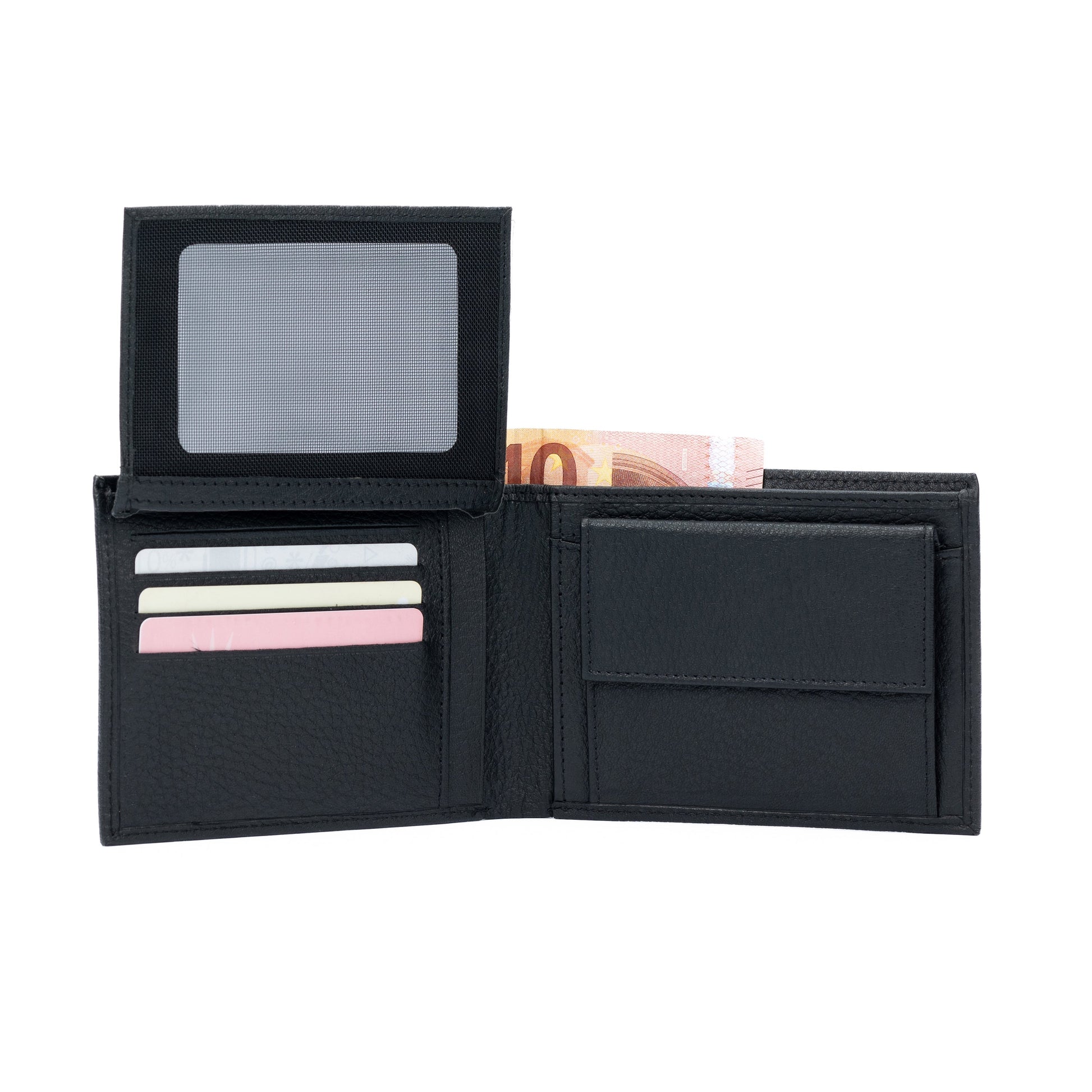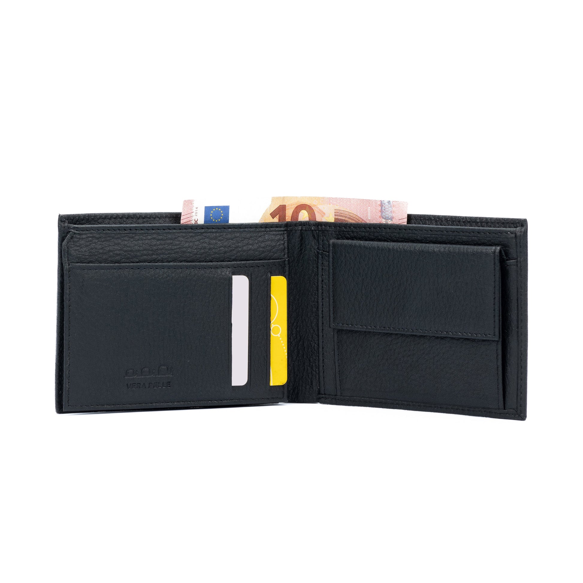 Il Portafogli Uomo è un prodotto in Vera Pelle disegnato in Italia e realizzato artigianalmente ed interamente con un pellame di primissima qualità. Il colore Nero accentua il suo stile Classico e Elegante e le cuciture in tono ne evidenziano la raffinatezza del Design. Le 4 tasche portadocumenti sono funzionali e pratiche e la tasca porta monete è compatta. Le Dimensioni da chiuso: cm 12.5 x 9.3 sono perfette e grazie all’organizzazione interna con scomparti multipli puoi tenere nello stesso posto tutto quello che ti è necessario. La confezione in Gift Box fondo e coperchio lo rende ideale per fare un regalo.