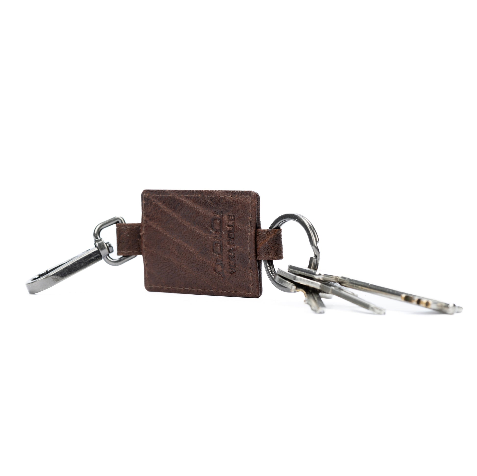 Il Porta Chiavi è un prodotto in Vera Pelle disegnato in Italia e realizzato artigianalmente ed interamente con un pellame di primissima qualità. Il colore Testa Moro la pelle Volanata e gli accessori in colore Nickel anticato ne accentuano lo stile Vintage ed Heritage. Il Design della forma il moschettone e l’anello per le chiavi ne garantiscono la praticità e la comodità. Le Dimensioni totali: cm 4 x 15 sono ideali per il minimo ingombro. La confezione in Gift Box fondo e coperchio lo rende ideale per fare un regalo.