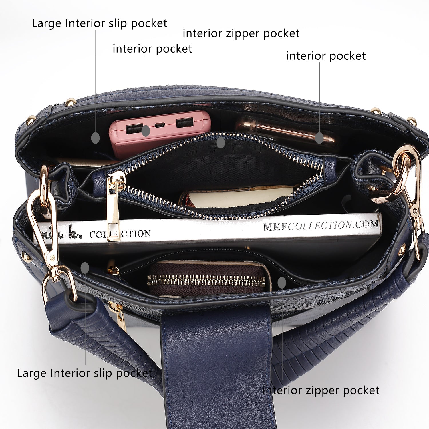 - POCKETS: Interior features a padded zip compartment, a wall zip pocket and two slip pockets. Exterior features one zippered back pocket.