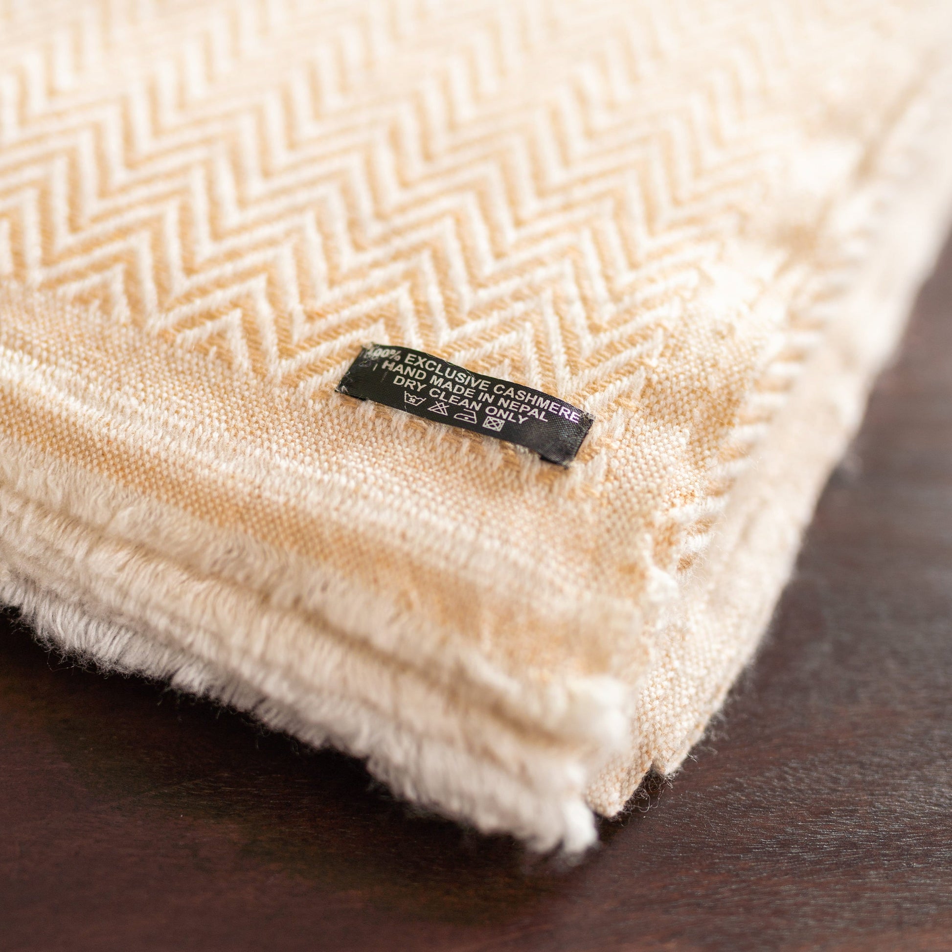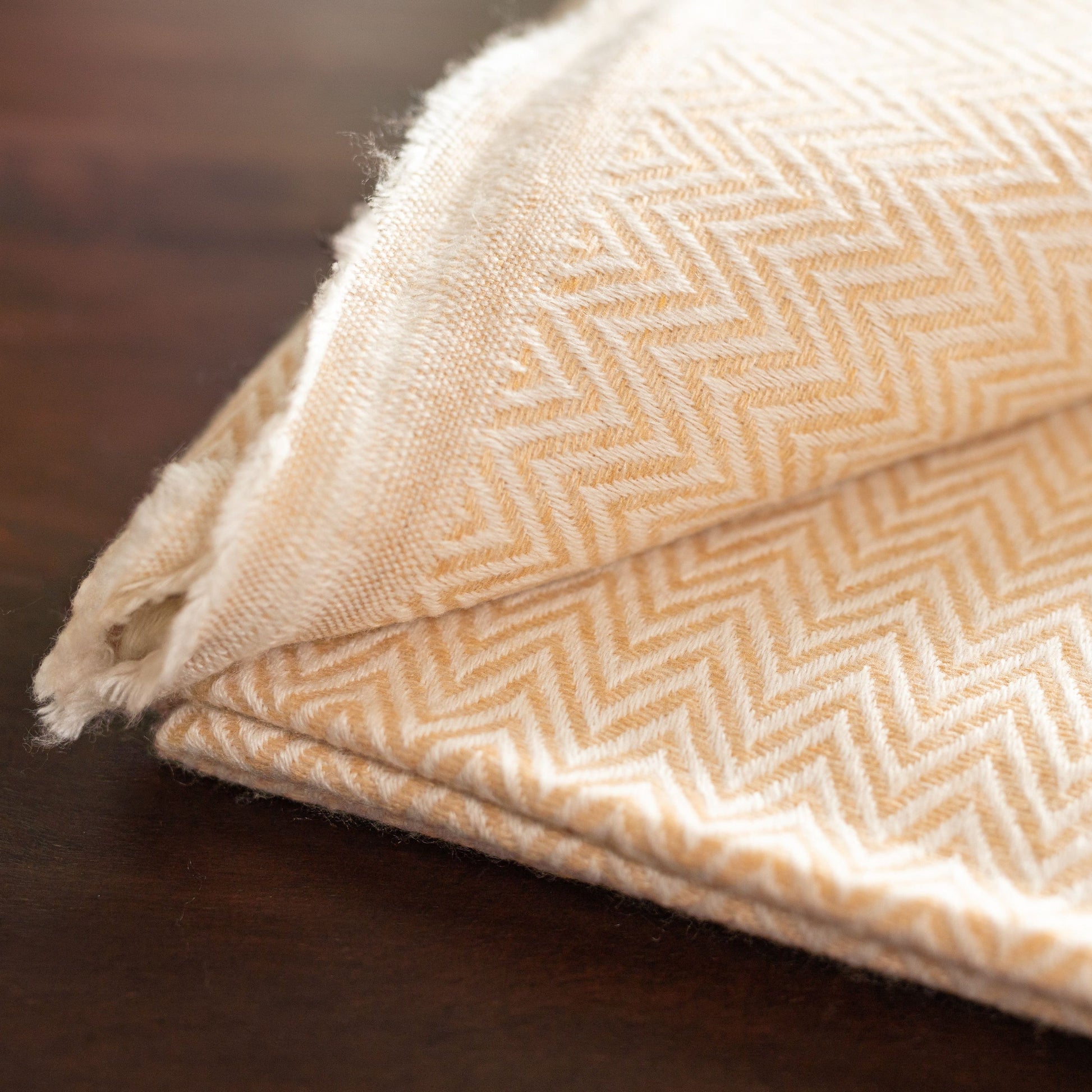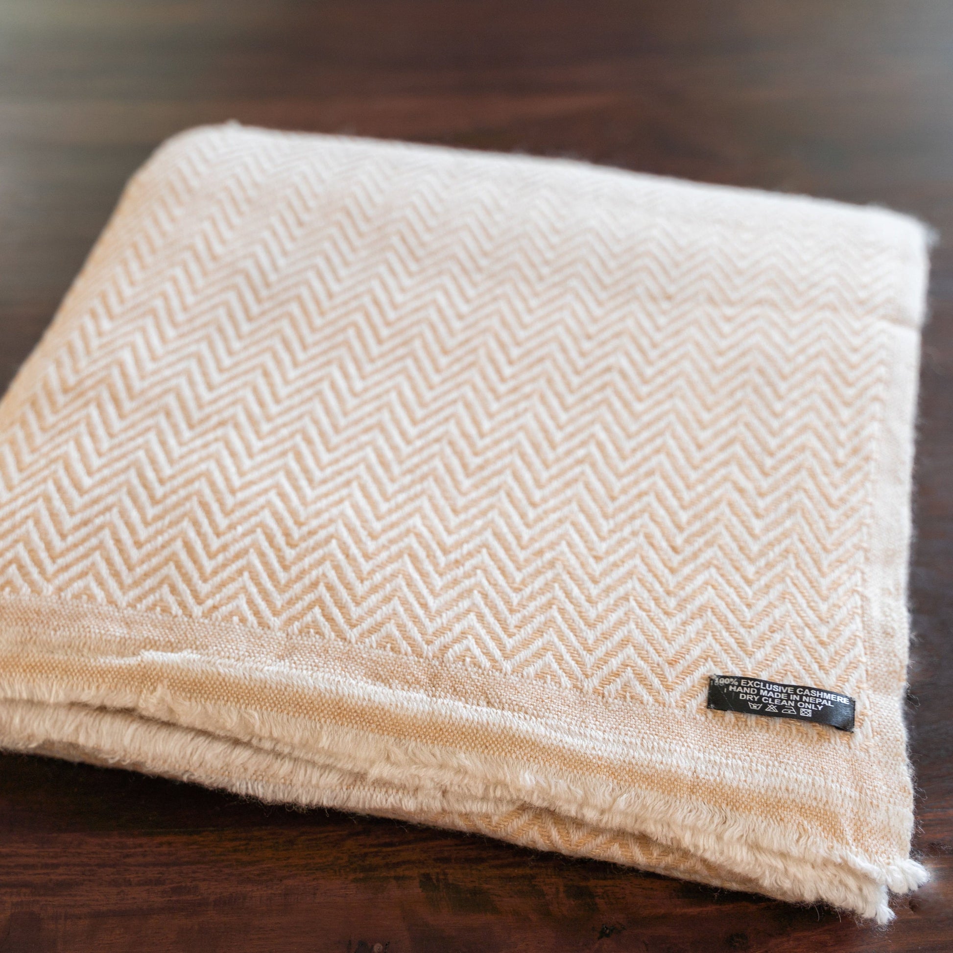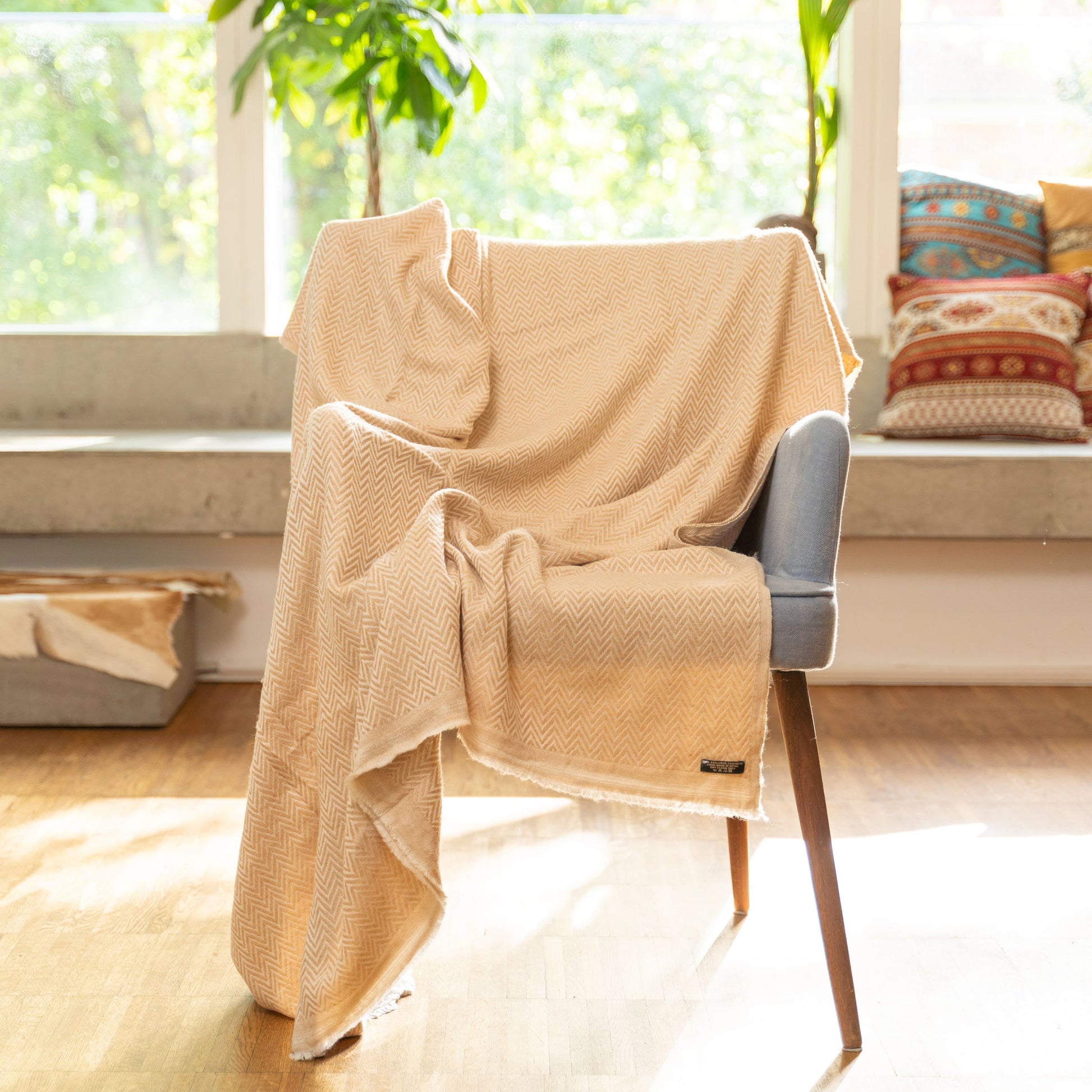 Kaschmirdecke goldbeige mit großem Fischgrätenmuster