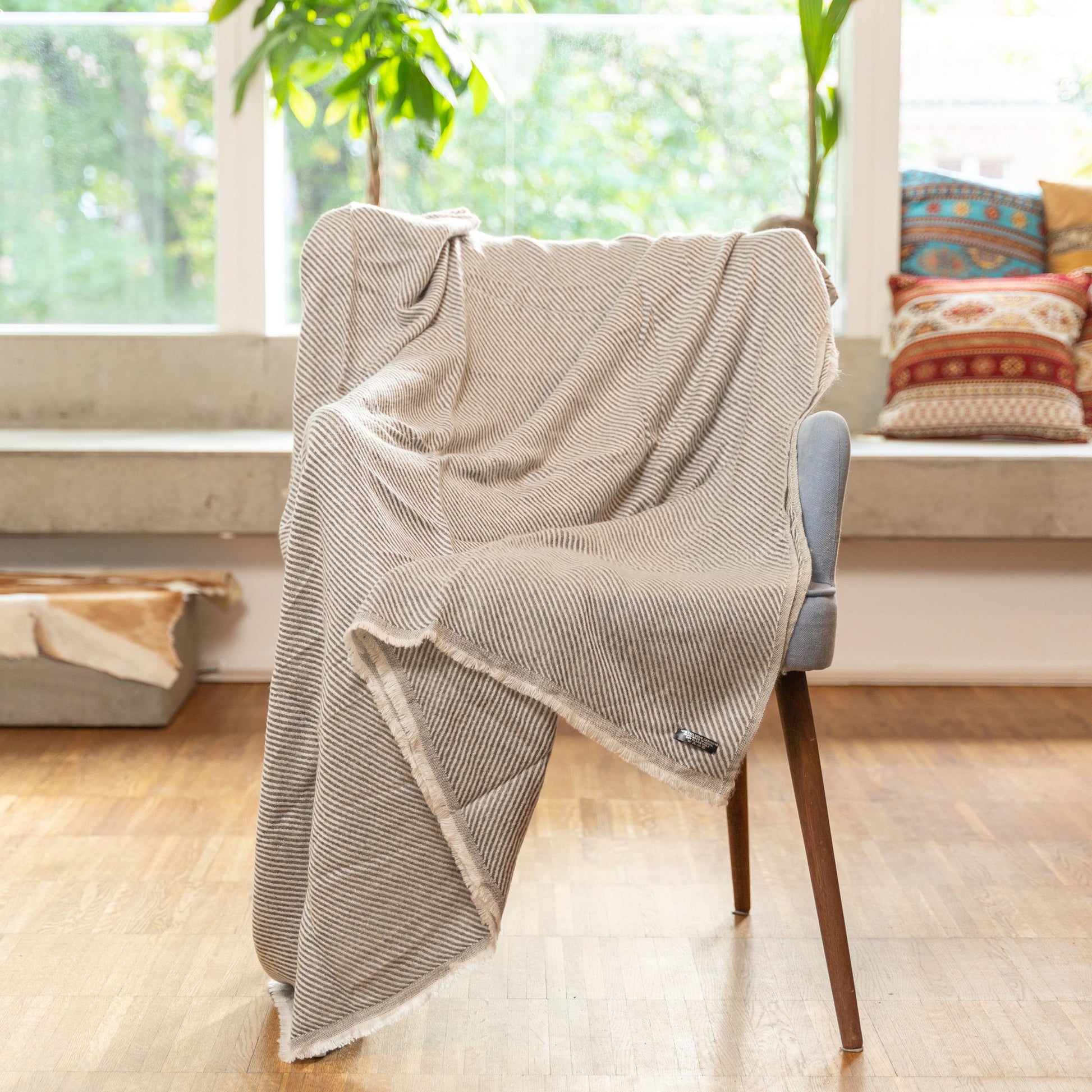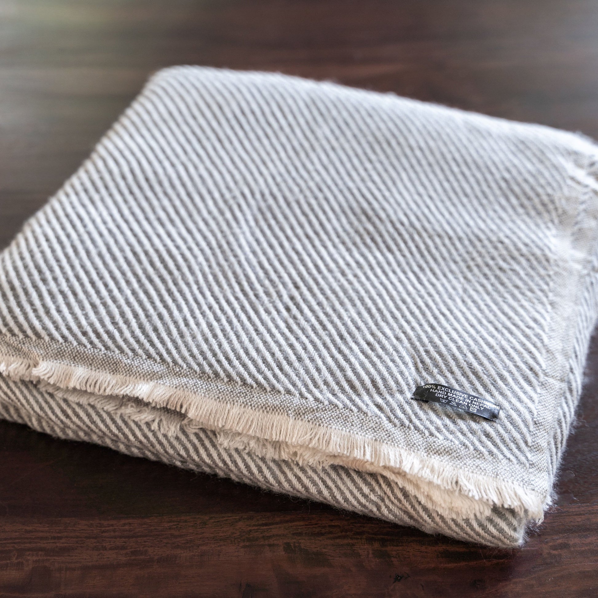 Kaschmirdecke hellgrau mit Streifenmuster/ gestreift