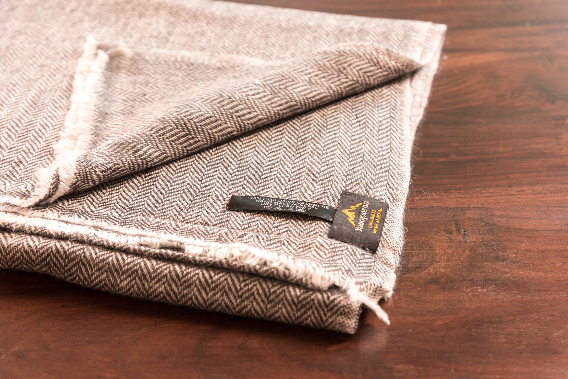 Kaschmirtuch schwarzgrau mit Fischgrätenmuster