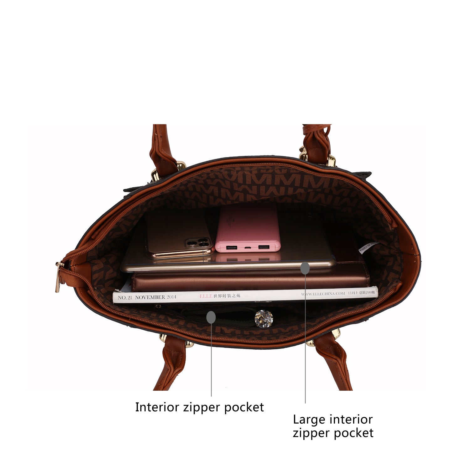 - POCKETS: Interior features a spacious compartment with zippered pocket and a bonus small handbag