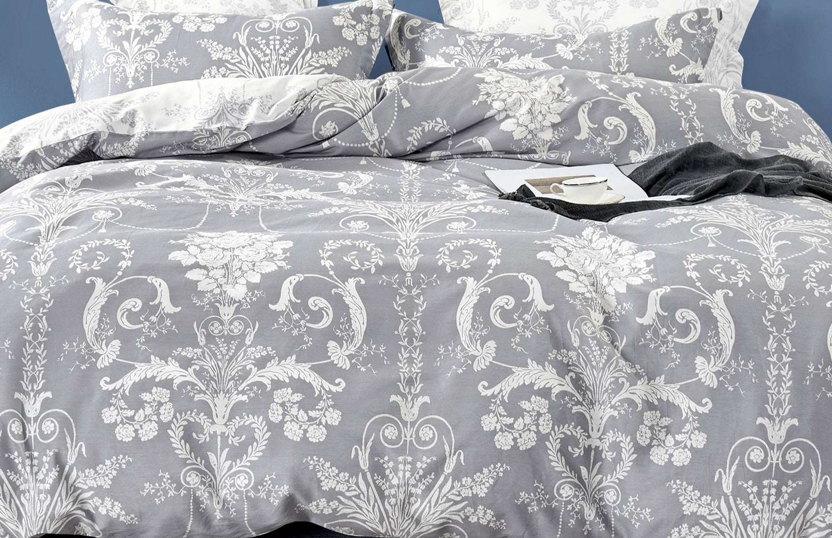 Lauren Damask White/Grey 100% Cotton Reversible Comforter Set