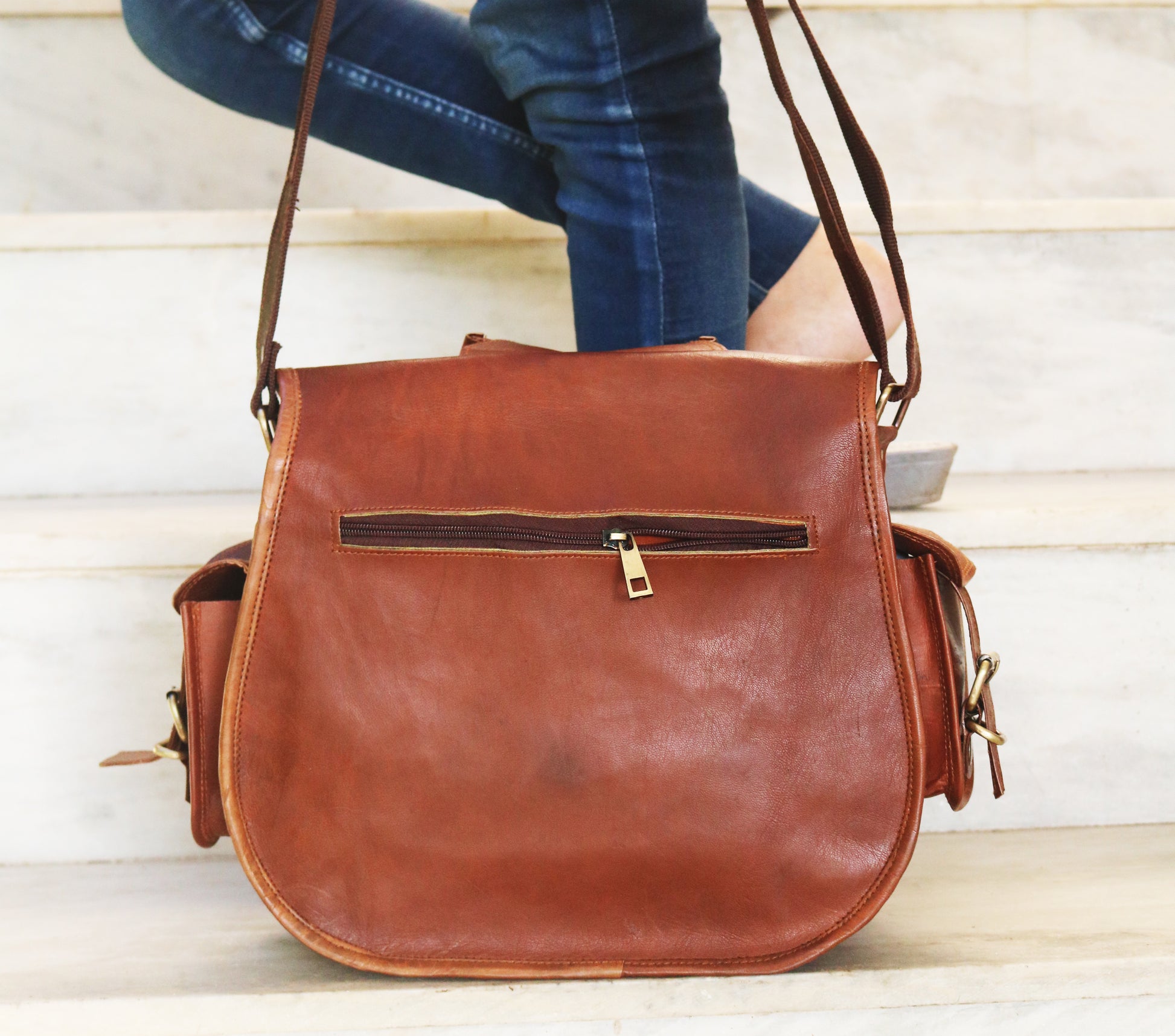 MADE OF – 100% Genuine Goat Leather. Measurements: 10' x 13' inches DURABLE: Made of heavy duty leather ,strong buckles. We have used better leather and better reinforced sewing method . Handmade Leather Bag , Handcrafted, Vintage, Genuine Leather, Women's, Girls, Females Leather Bags . 3 Inner compartments, 3 Front Pocket and 2 Zipper Pockets,2 Side pockets Long and adjustable Shoulder Straps . Brass/ Metal Fitting Buckles and Holders and Internally Lined with Strong Orange Canvas Make it Durable and Long Lasting .
