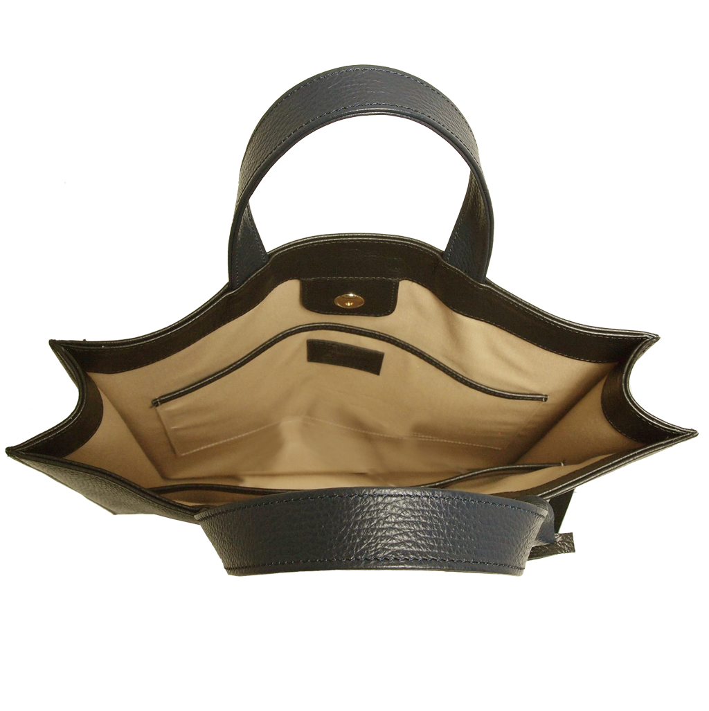 72 Smalldive teams up with Scanitore Petralli, Milan's treasured skiving workshop, to turn this tote bag, made in durable top grain calf leather, into a lightweight and sleek item to behold. The cotton lined interior is handily detailed with patch pockets and securely fastened with a self-centering magnetic clasp. Contrasting leather handles and a bi-colored geometrical bag charm adds a playful touch to this elegant carry-all.