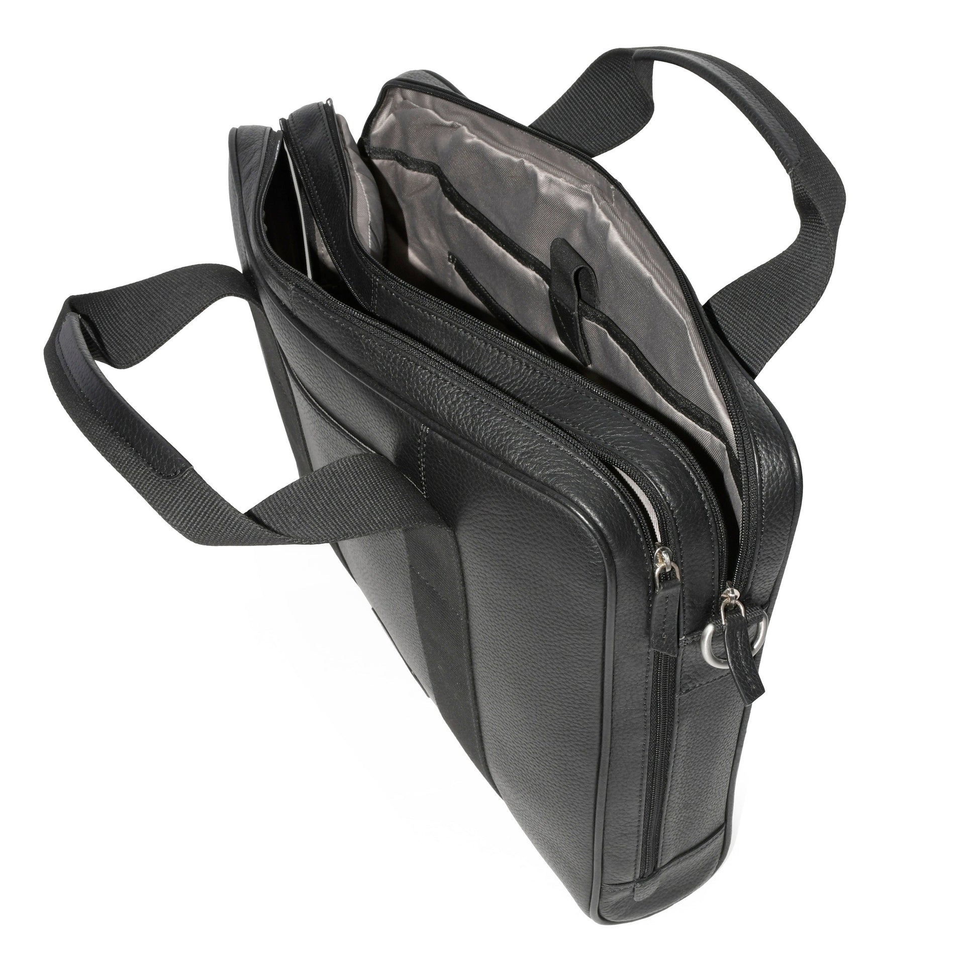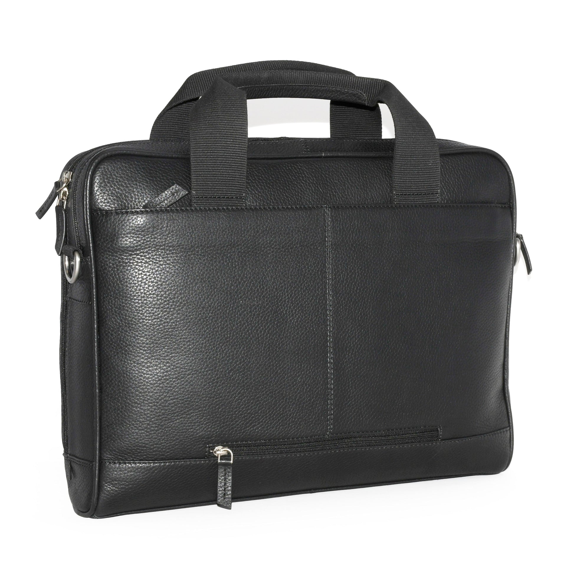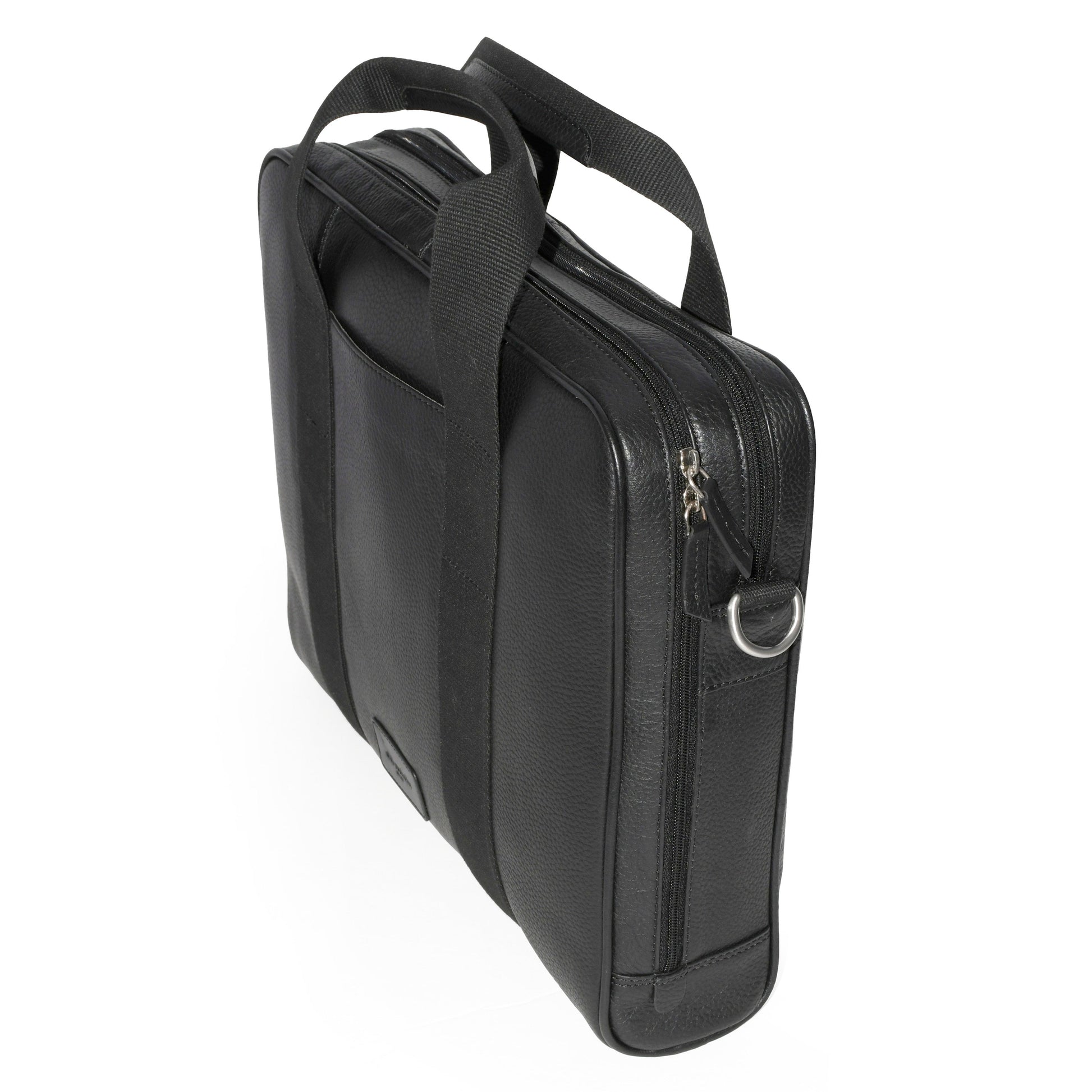 This convenient and practical, large capacity, leather messenger from Club Rochelier meets all your business and travel needs. Fabricated in Genuine textured leather and boasts a large interior compartment for documents, padded laptop and Ipad compartments, two accessories pockets and an interior zipper pocket. This bag is also the perfect travel buddy with a large back zipper pocket that contains a travel-buddy strap that attaches to the telescopic handle of most luggage. The adjustable strap allows for crossbody or shoulder carry.