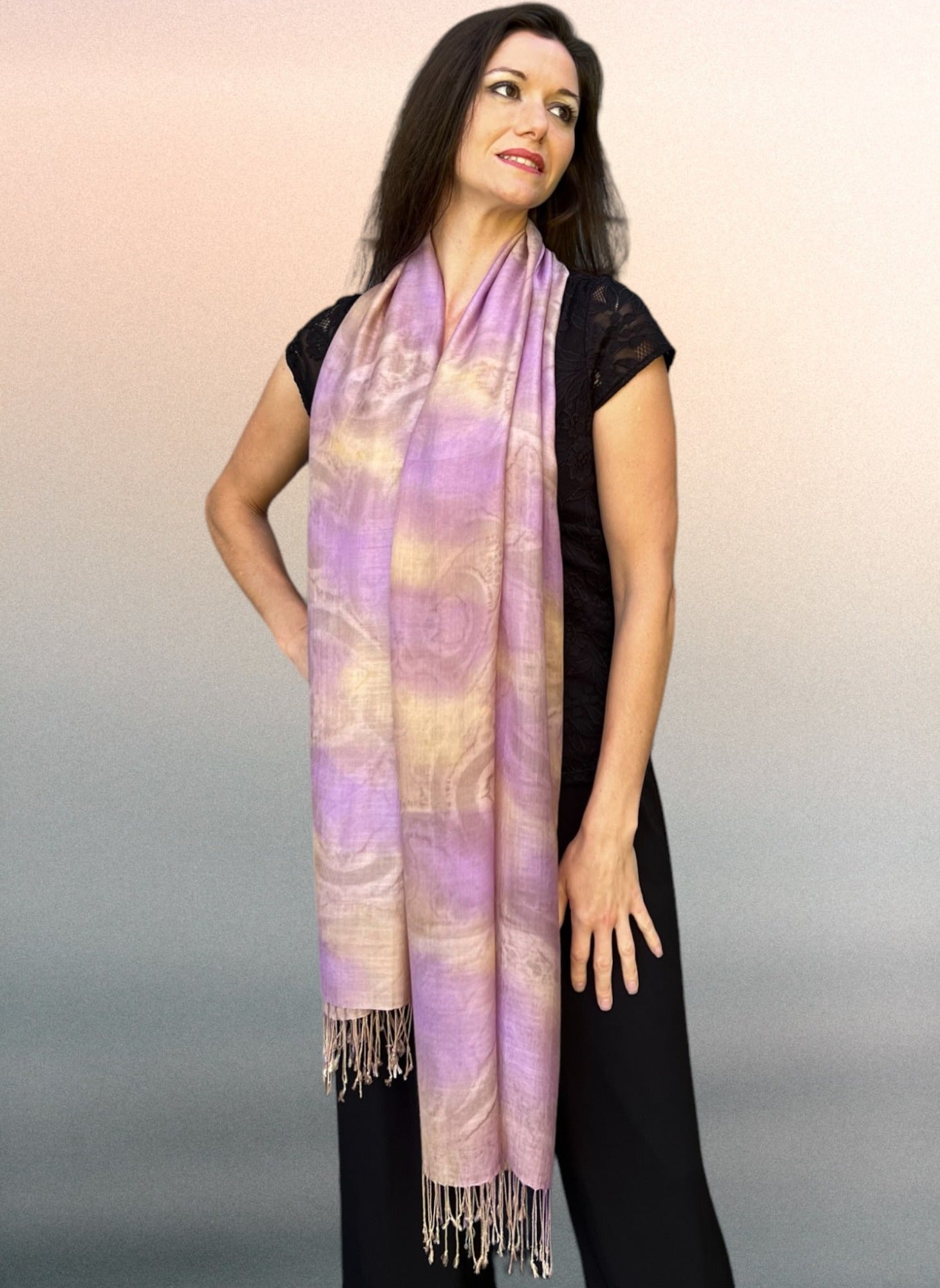 Lilac Modal Silk Hand Painted Watercolor Scarf