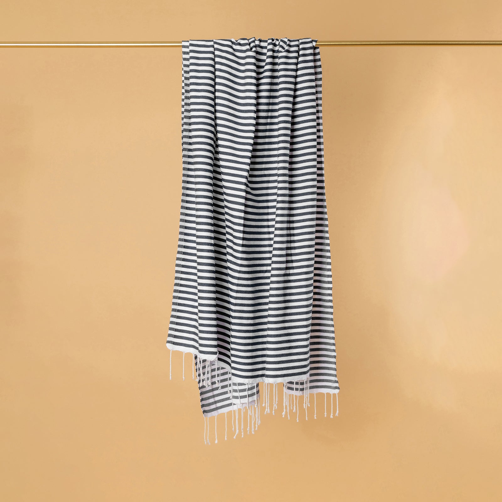 Black striped, medium-weight TURCO towel. Perfect for your sauna and beach trips.