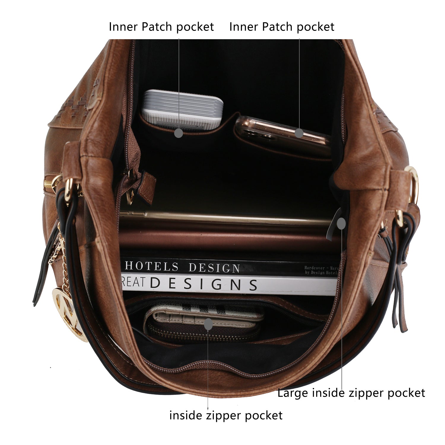 - POCKETS: Inside features two slip pockets and a wall zip pocket. Exterior features one zip back pocket and two zip side pockets