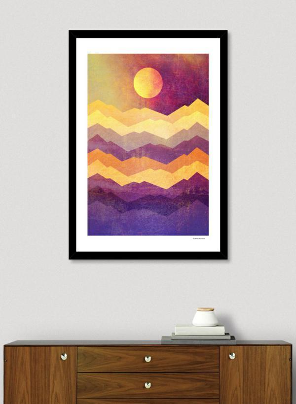 The Vector frame is made from solid wood with a contemporary, angular profile measuring 0.87" wide x 0.87" deep. A gesso coating gives the moulding rich color and a smooth finish. Premium shatterproof acrylic protects the art print, while an acid free dust cover on the back provides a custom finish. Includes wall hanging hardware