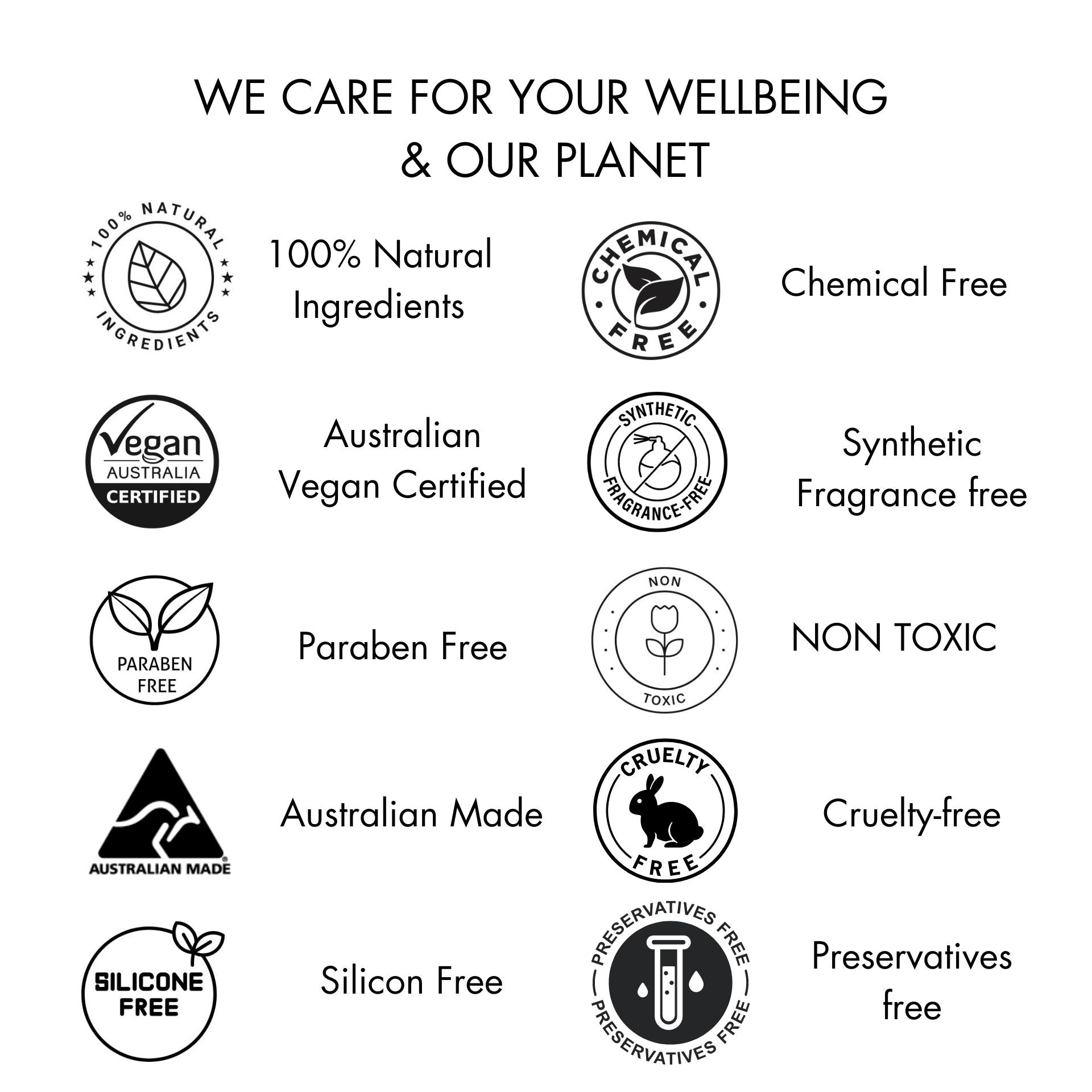 Helianthus Annuus (Sunflower) Seed Oil, Vitis Vinifera Seed (Grape Seed) Oil, Tocopheryl Acetate (Natural Vitamin E), Rosa Damascena (Rose Otto) Flower Oil, Backhousia Citriodora (Lemon Myrtle) Leaf Oil, Leptospermum Petersonii (Lemon Scented Tea Tree) Oil, Melaleuca Alternafolia (Tea Tree) Leaf Oil, Citrus Paradisi (Grapefruit) Peel Oil, Citrus Aurantium Dulcis (Sweet Orange) Peel Oil