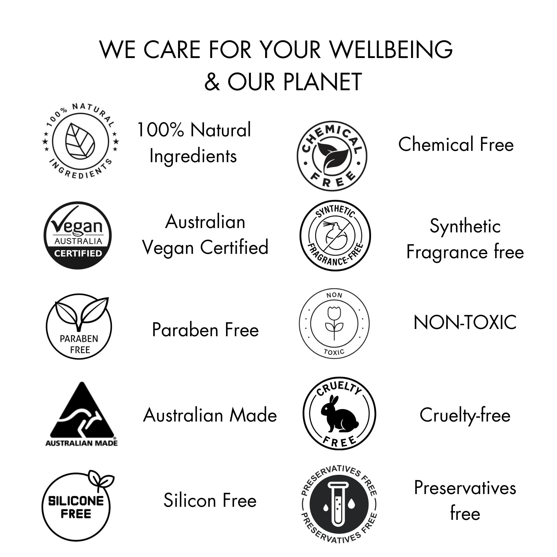 Aloe Barbadensis Leaf Juice, Rosa Damascena (Rose Otto)Flower Distillate, Glycerin, Passiflora Incarnata (Passionflower) Fruit Extract, Actinidia Chinensis (Kiwi) Fruit Extract, Terminalia Ferdinandiana (Kakadu plum) fruit extract, Syzygium Leuhmanii (Lilli Pilli) Fruit Extract, Oryza Sativa (Rice) Bran Oil, Euterpe Oleracea (Acai) Fruit Oil, Rosa canina (Rosehip) Fruit Oil, Passiflora Edulis (Passion fruit) Seed Oil, Glyceryl Stearate, Cetearyl Glucoside, Cetearyl Alcohol, Cetyl Alcohol, Parfum (Naticide), Cucumis Sativus (Cucumber) Seed Oil, Citrullus Lanatus (Watermelon) Seed Oil, D-alpha-Tocopherol/vitamin E natural, d-Panthenol (Vitamin B5), Oenothera Biennis (Evening Primrose) Oil, Persea Gratissima (Avocado) Oil, Cucurbita Pepo (Pumpkin) Seed Oil, Chamomilla recutita (Matricaria) Flower Oil, Citrus medica limonum (Lemon) Peel Oil, Lavandula angustifolia (Lavender) Flower Oil, Citrus aurantifolia (Lime) Oil, Potassium Sorbate