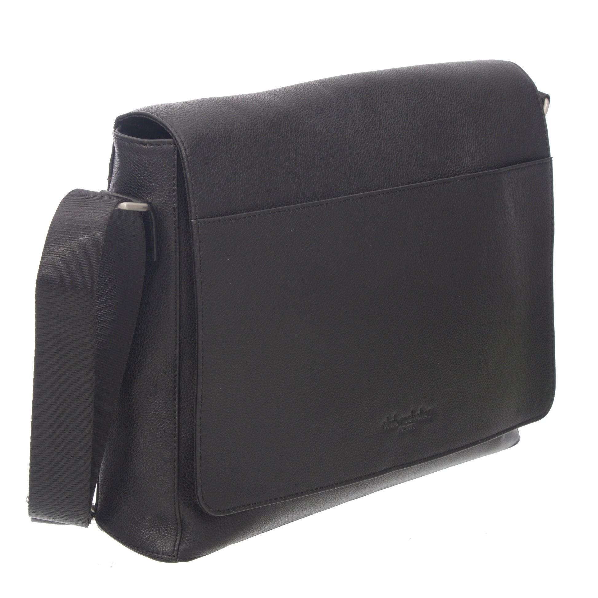 Genuine Leather, Exterior slip pocket on front flap, Magnetic Flap-top closure, Adjustable nylon webbing shoulder strap ( 10.5" - 25.5"), Polyester lined interior, Interior zipper pocket, accessories pockets for cell phone and pens, Large main compartment for documents, Padded compartments for Laptop and Ipad, Silver metal hardware, Club Rochelier embossing
