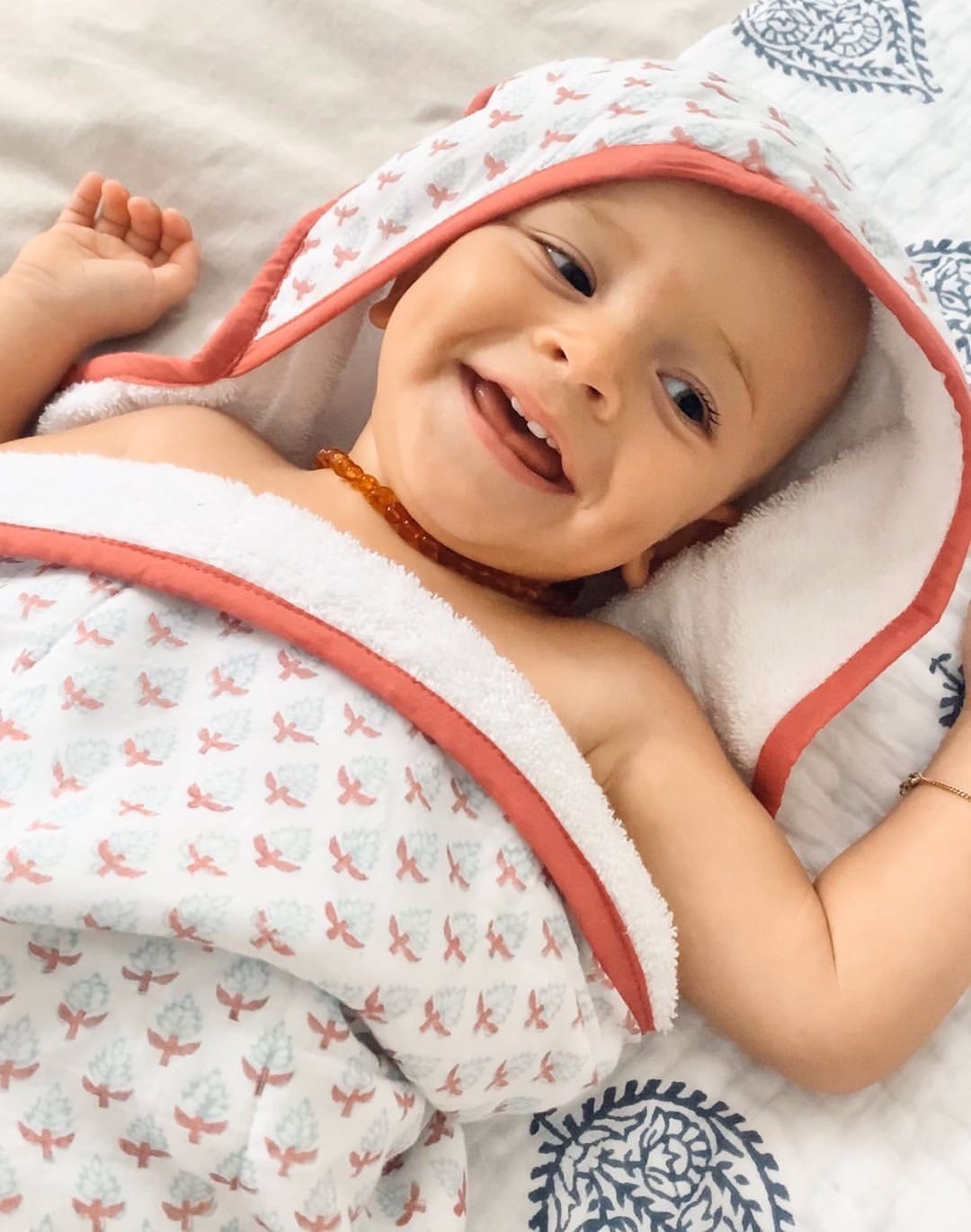 • Полотенце с набивным рисунком (одна сторона изготовлена из хлопковой вуали — той же супермягкой ткани, что и наше постельное белье! А другая — из мягкой хлопковой махры.)