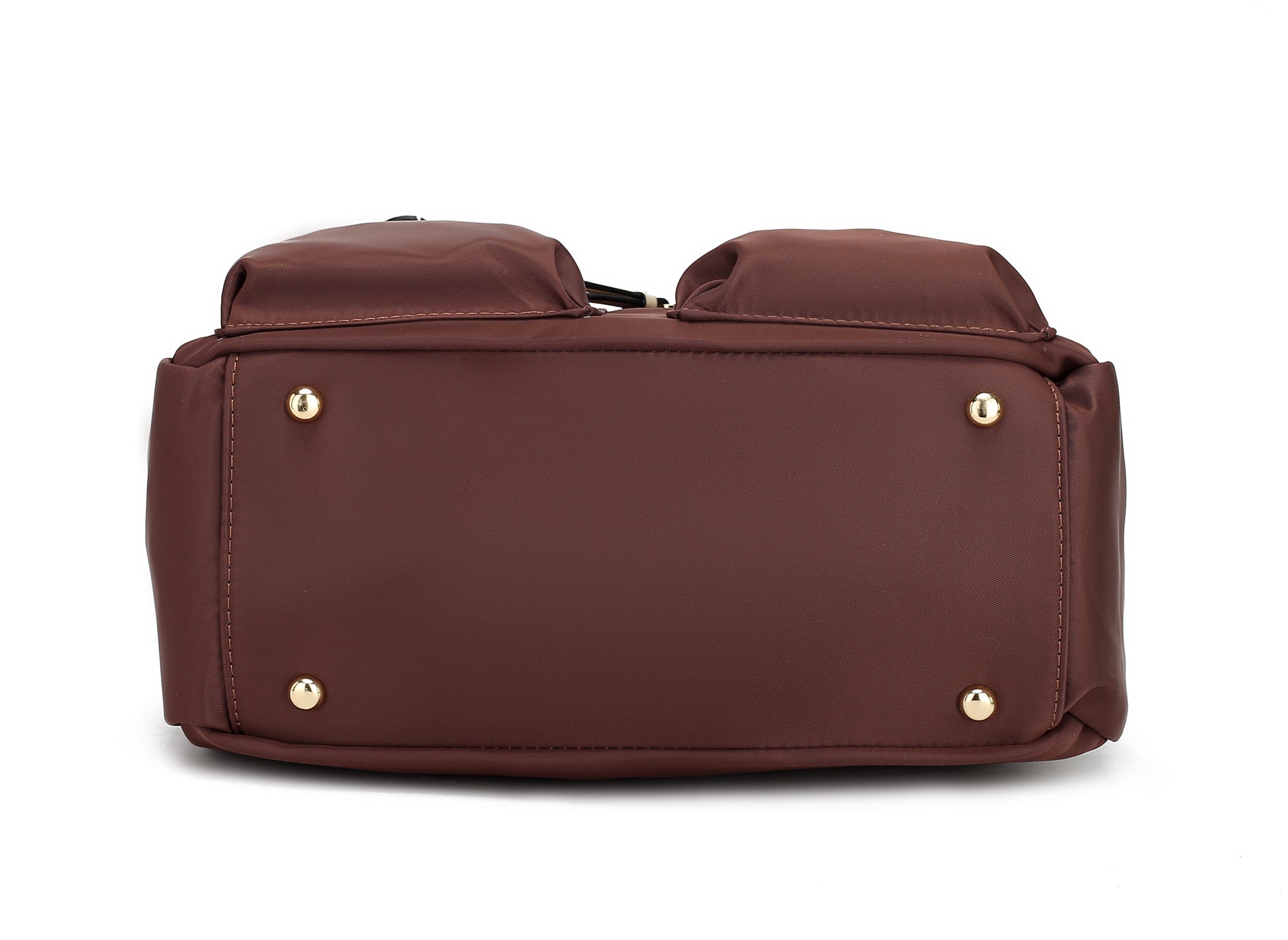· Design with luxurious gold tone embellishments, the Serena Shoulder Bag is a sophisticated yet street-chic style. Crafted from durable nylon material, with color-block trim in a smooth pebble vegan leather, the Serena Shoulder Bag is a modern take on the wardrobe icon. Unzips it to reveal a one-compartment fully lined interior with a slip pocket and a wall zippered pocket. The Serena Shoulder Bag has many convenient front pockets to keep all your belongings: two zippered pockets with our round medal emblem zipper puller, one slip pocket, and a snap closure pocket. It has also a back zippered pocket. The Serena Shoulder has an adjustable strap for comfortable all-day wear. The Serena Shoulder bag has metal feet to keep the bag upright position and has a semi-structured silhouette.