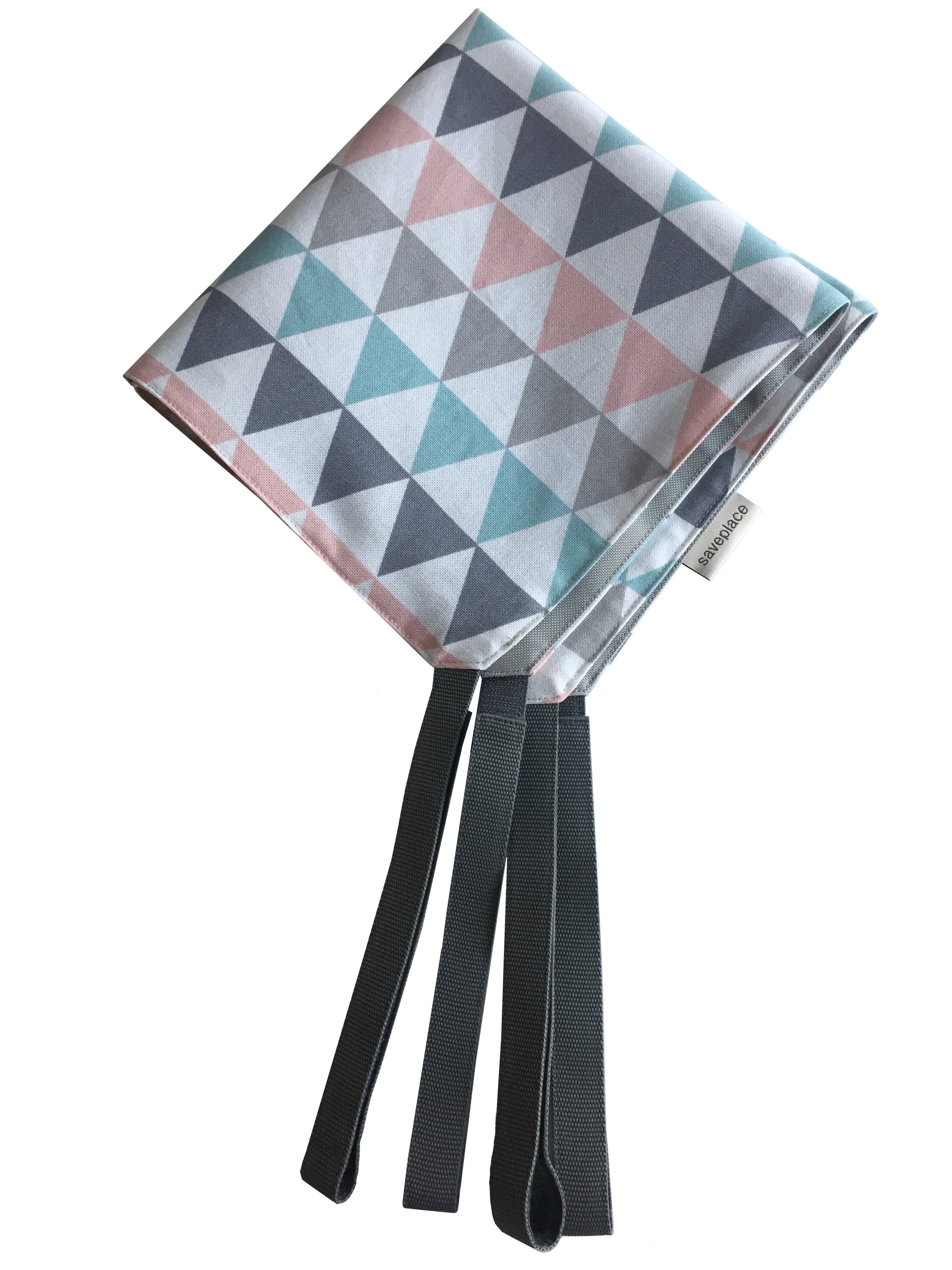 Materials: upper side – cotton; bottom side – strong & water resistant fabric. Both sides are used.