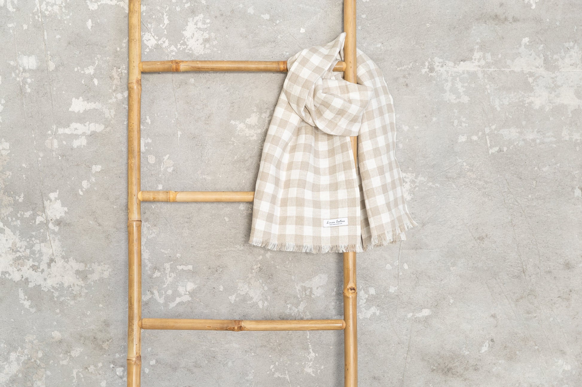 An elegant and stylish scarf colored in Natural and White Check is made from 100% stonewashed linen. A long one-layer scarf is a perfect accessory for any season. Choose a pop of color for your outfit. They are stone-washed and preshrunk, which made these scarfs super soft to touch and easy to care for.