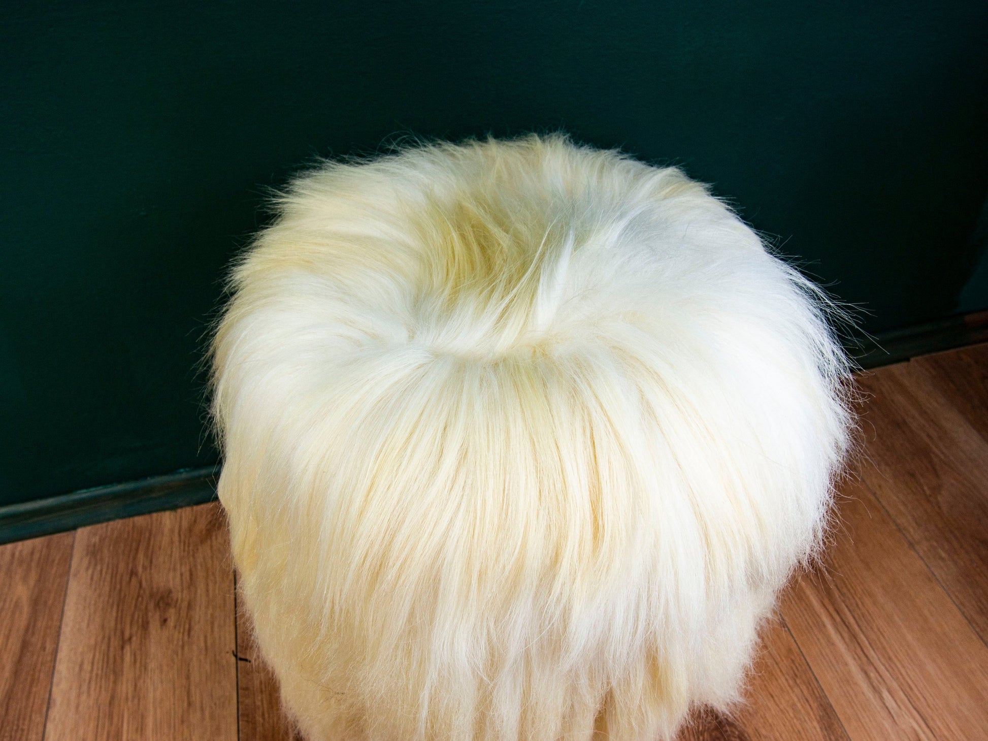 Beautiful Cream sheepskin ottoman made of natural birch wood and soft genuine sheepskin. Very fluffy! You can put them in almost every room you want. These puffs can not only be an elegant decoration that will delight your guests, but also items that you will be able to use on a daily basis. You will be delighted how soft and comfortable they can be!