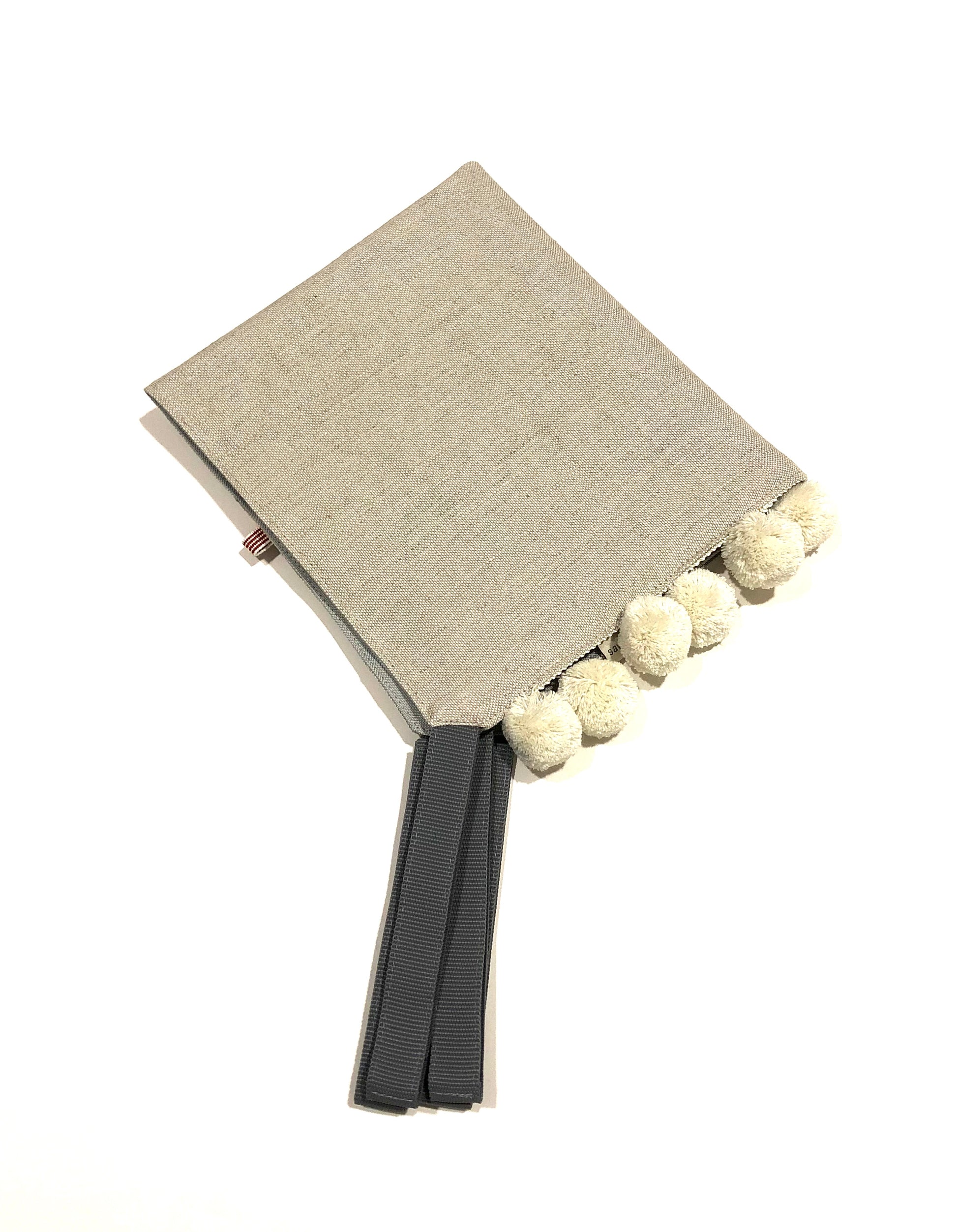 Materials: upper side – linen; bottom side – strong & water resistant fabric. Both sides are used.