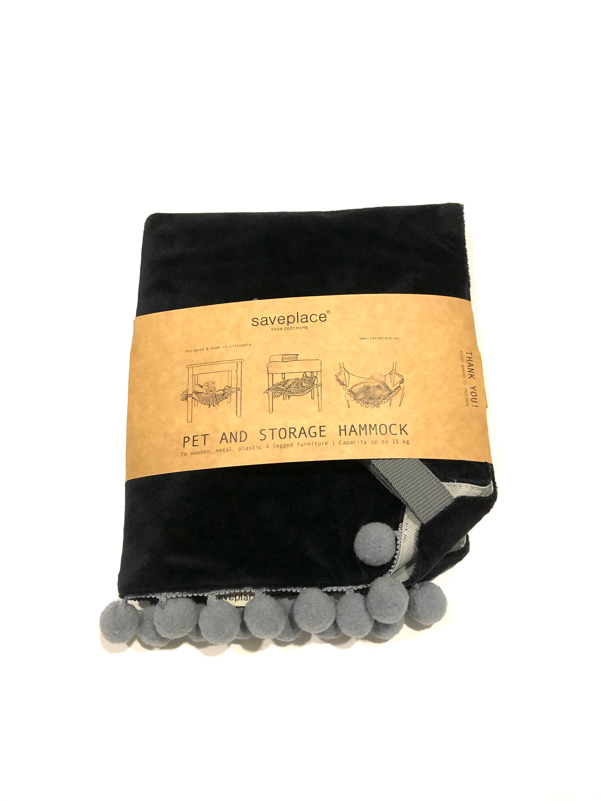 NIGHT STORM Saveplace® black hammock for pets & storage with pom poms