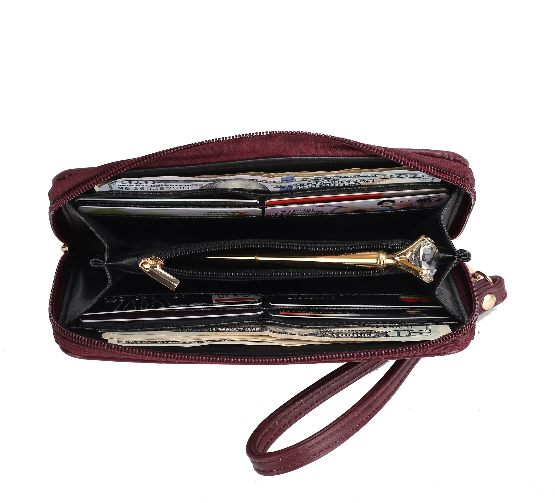 - POCKETS: 1 exterior zipper back pocket, 2 interior pockets, 1 interior zipper pocket.