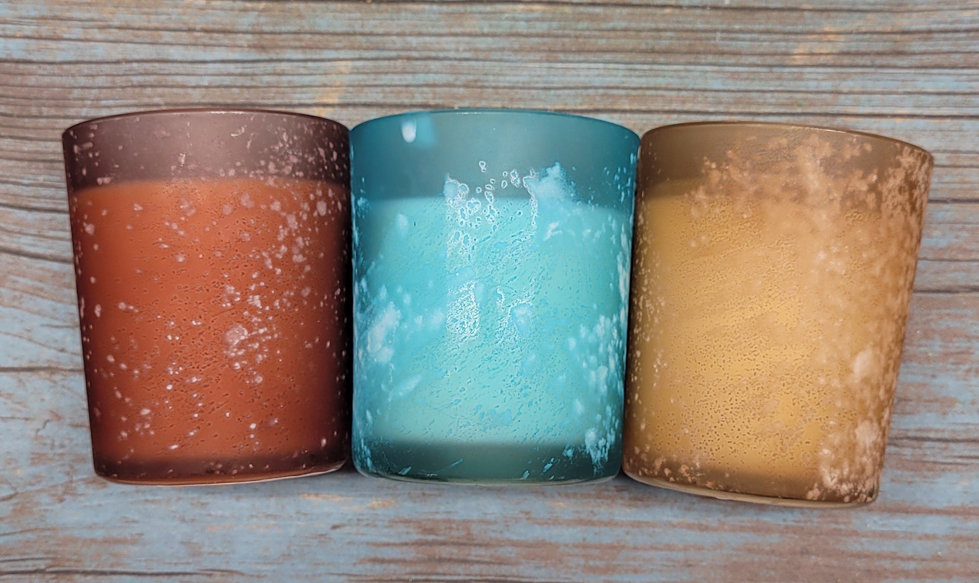 All of the candles at the Morfosoaps studio are made from soy wax! Since soy wax is a natural product, you may notice slight variations throughout the year. The wax may be very soft in its solid state or as hard as a rock at other times. Sometimes the wax melts so clear and translucent, and other times it may melt and look a little cloudy. All of this is normal and expected when choosing a soy candle. We take pride in the quality of our products at Morfosoaps and do regular tests to ensure we offer our customers the best quality.