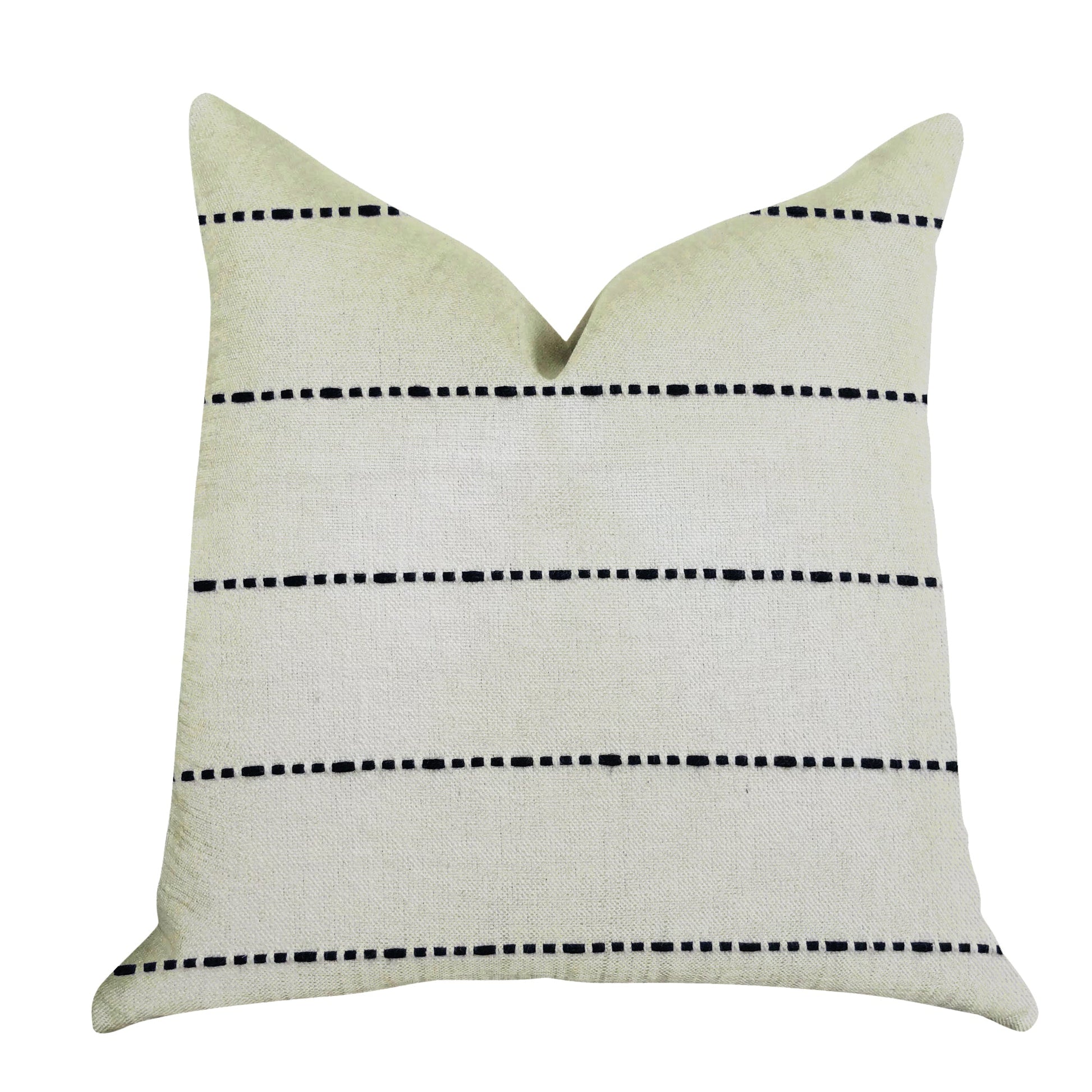 Transform your couch with this designer interweave vanilla bean luxury throw pillow in black and white. The fabric of this trendy pillow is a blend of Cotton, Polyester and Rayon.
