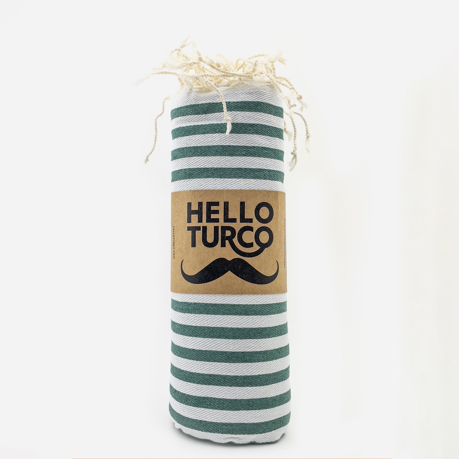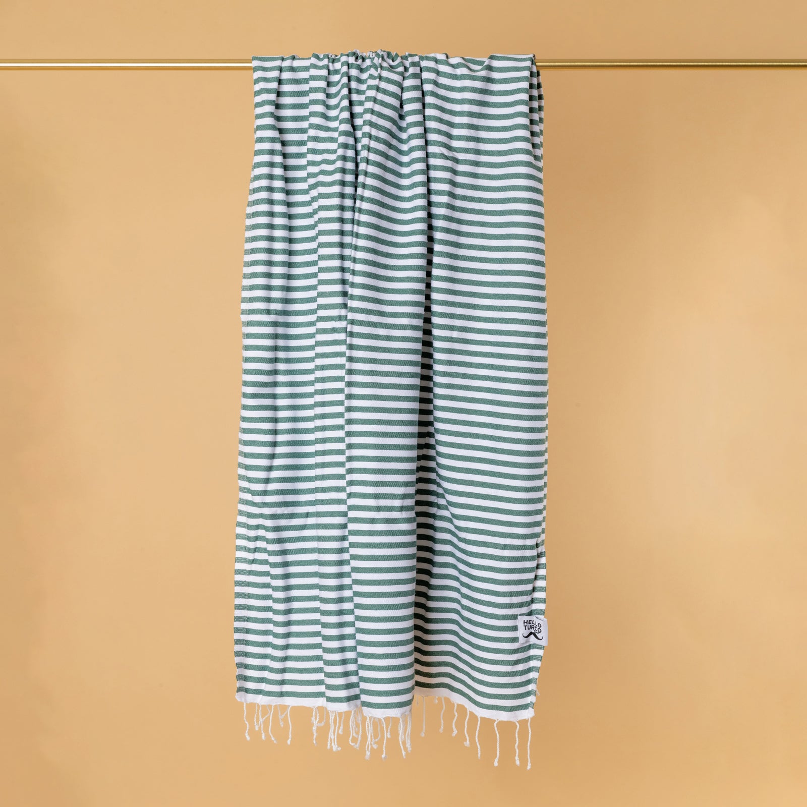 Green striped, medium-weight TURCO towel. Perfect for your sauna and beach trips.