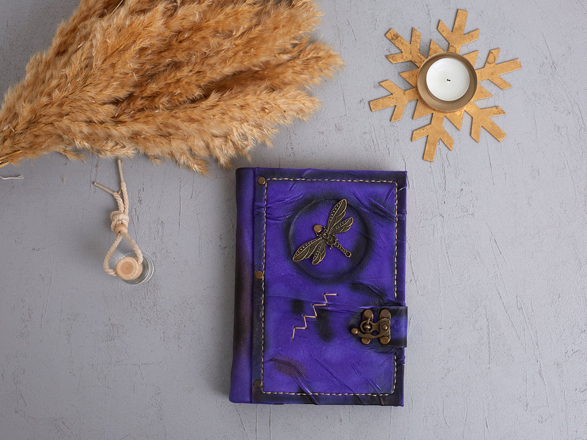 Purple Butterfly Design Craft Leather Journal Diary Notebook