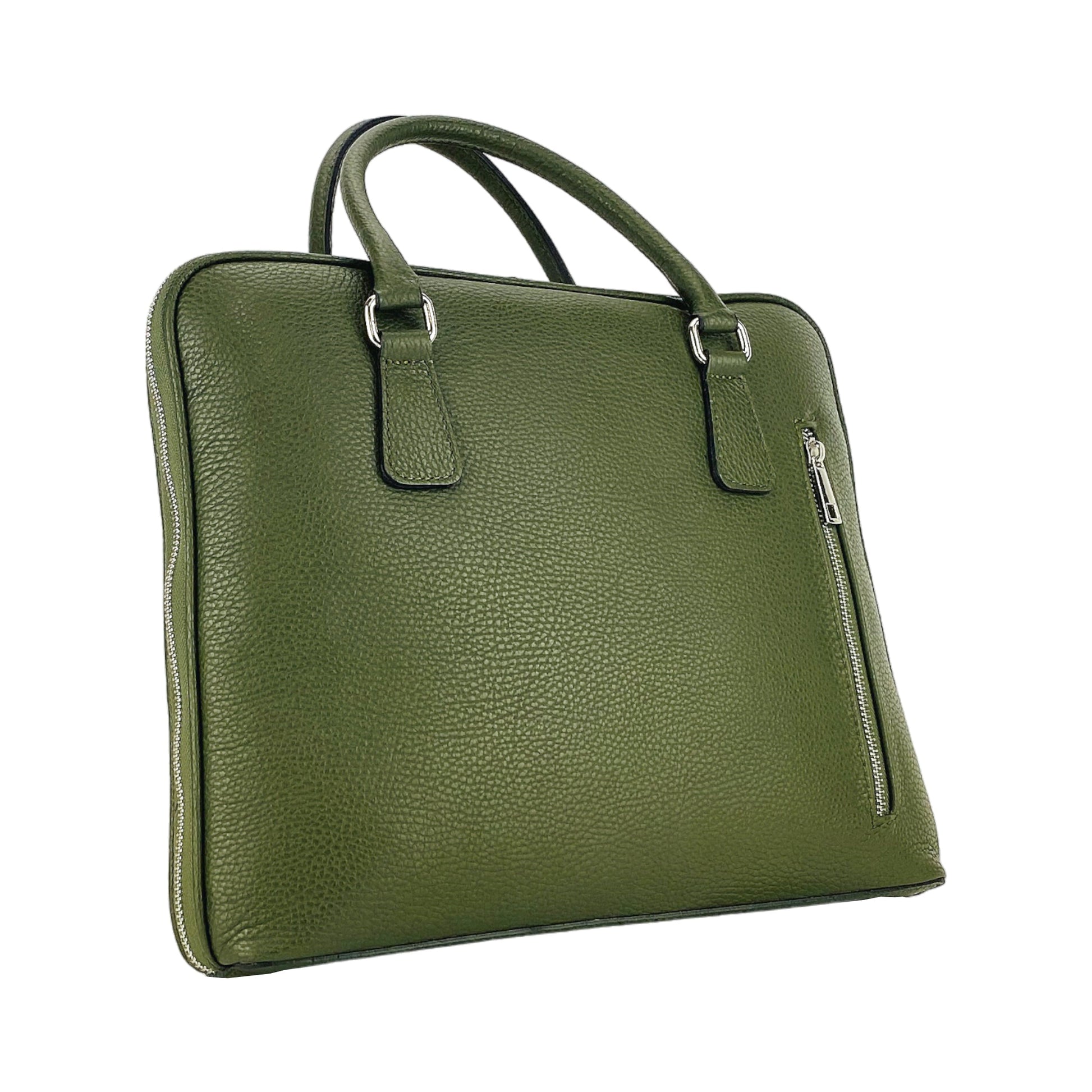 Cartella Business Unisex Made in Italy in Vera Pelle, disegnata e realizzata artigianalmente ed interamente con un pellame di primissima qualità. Compatta ed elegante adatta per un look stiloso. Il colore Verde accentua il suo stile Elegante e Fashion. Le tasche interne porta Pc e con lampo, la rendono pratica e versatile. Comoda la tasca verticale frontale con chiusura lampo. Le Dimensioni cm 36 x 29 x 6,5 sono perfette per portare con te il necessario senza essere troppo ingombrante. Funzionale e sicura la chiusura con lampo Nickel Lucido . La confezione in sacchetto Tnt rende la Cartella Business Unisex ideale per un regalo ed al tempo stesso la protegge dalla polvere e dalla luce durante il periodo di inutilizzo.Share