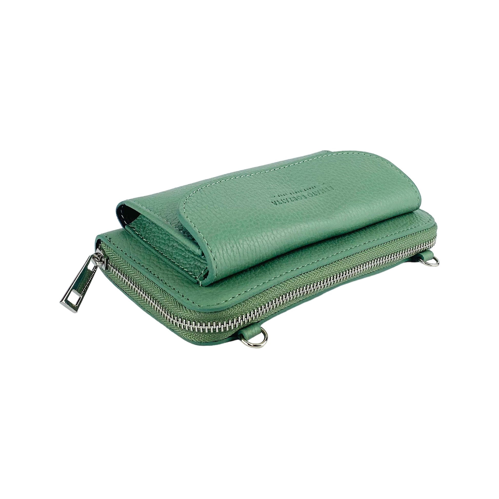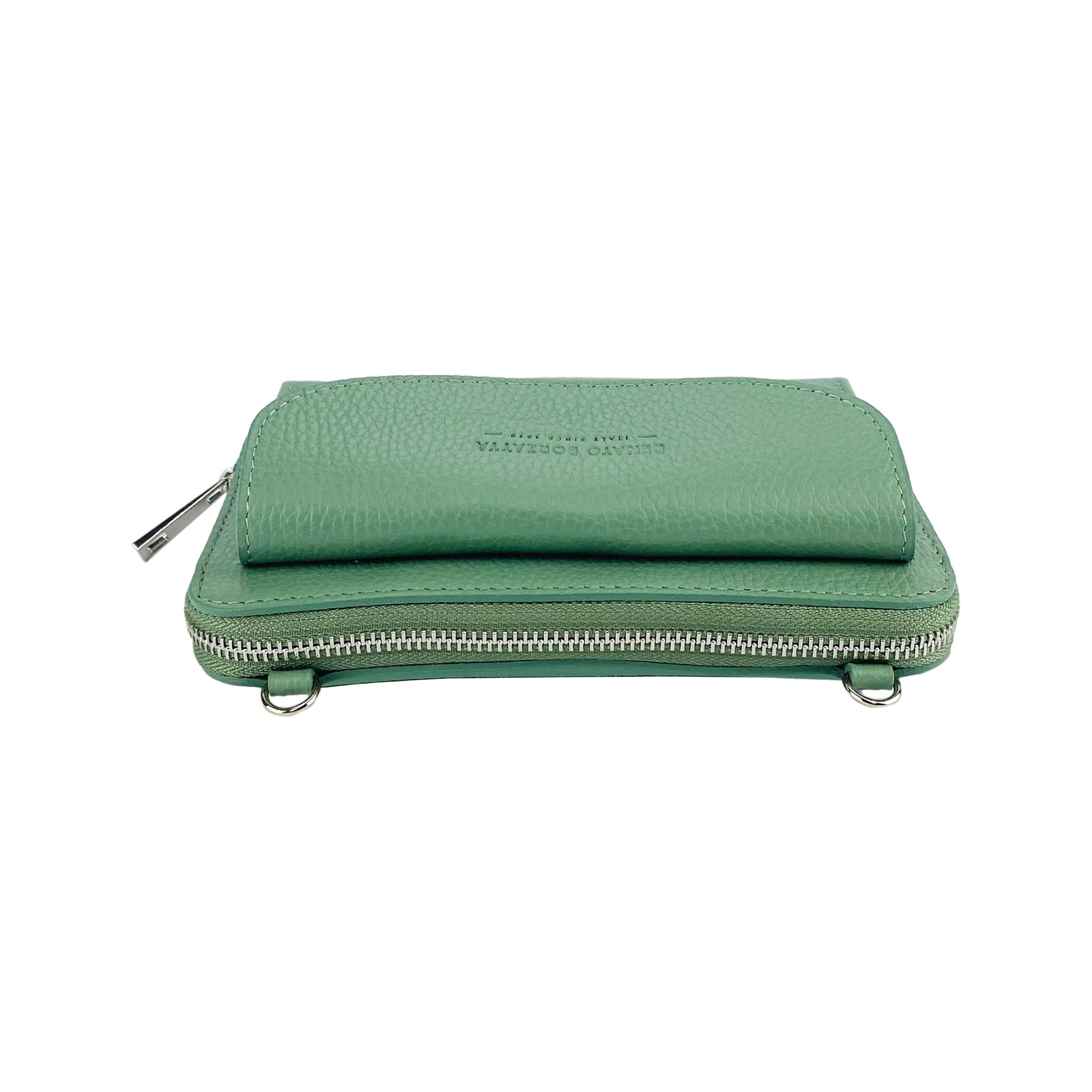 P/Fogli Donna con portacellulare Made in Italy in Vera Pelle, disegnato e realizzato artigianalmente ed interamente con un pellame di qualità. Compatto ed elegante adatto ad ogni outfit. Il colore Menta accentua il suo stile Elegante e Fashion. I 3 soffietti interni e la tasca con lampo, lo rendono versatile. Comoda la tracollina removibile e la tasca portacellulare frontale con pattina e bottoncino automatico. Le Dimensioni cm 19,5 x 11 x 5 sono perfette per portare con te il necessario senza essere troppo ingombrante. Funzionale e sicura la chiusura con lampo Nickel Lucido. La confezione in sacchetto Tnt rende il P/Fogli Donna a tracolla con portacellulare ideale per un regalo ed al tempo stesso lo protegge dalla polvere e dalla luce durante il periodo di inutilizzo.Share