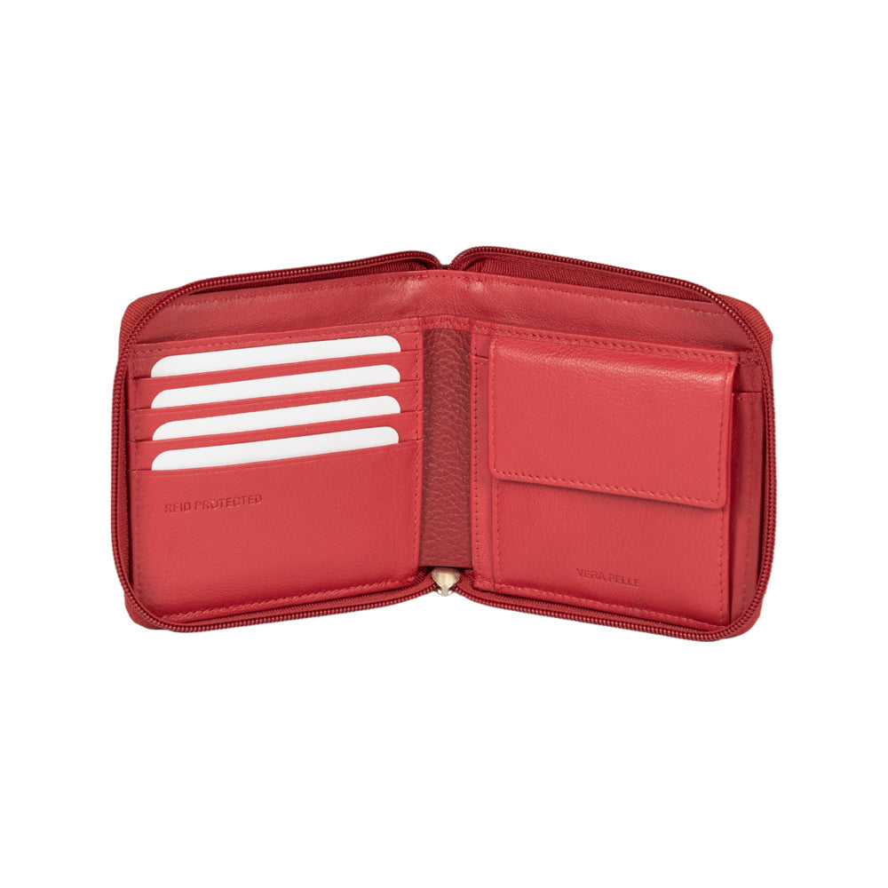 RB12175V | Portafogli con Lampo in Vera Pelle pieno fiore, grana