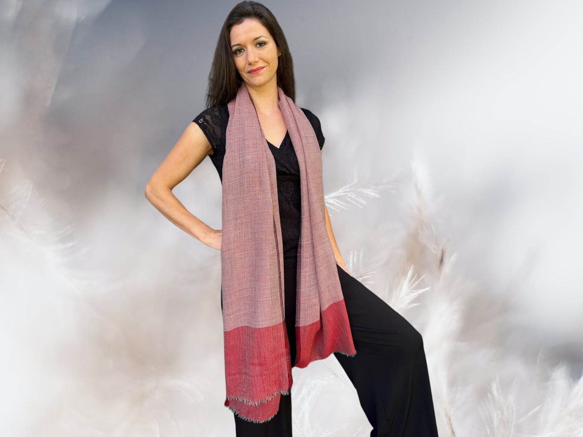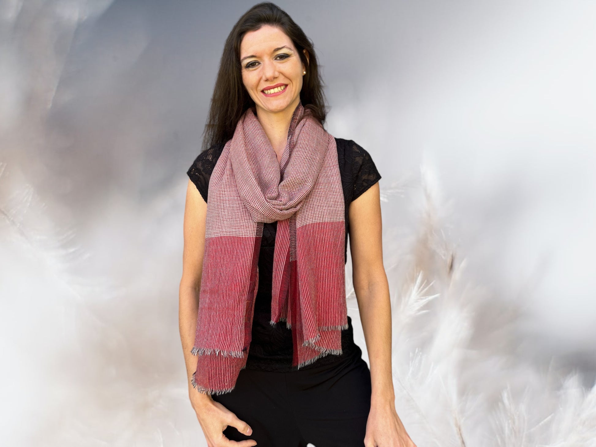 Sheer look and lightweight. Luxuriously soft, warm and elegant scarf. Eyelash fringes on both ends. This unisex, timeless plaid scarf makes a great gift and keeps you warm.