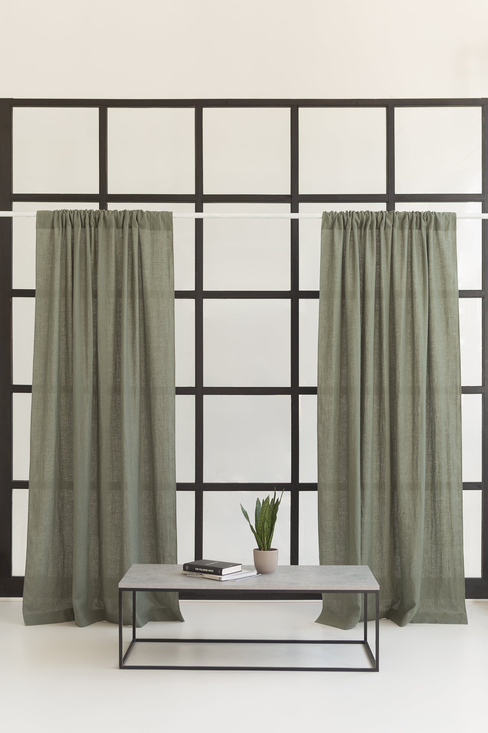 Safari Green semi-sheer linen curtains are made from 100% natural linen. The solid grey color will help you to create a stylish and modern atmosphere at your home, making it look unique. Fitted with a rod pocket for easy hanging.