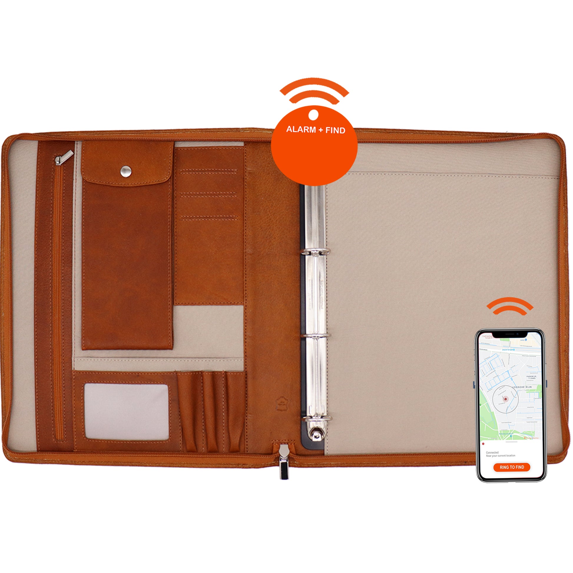 - Voorkom verlies via de mobiel , doordat de tracker u waarschuwt binnen een range van 25 meter als u de schrijfmap vergeet of verliest!