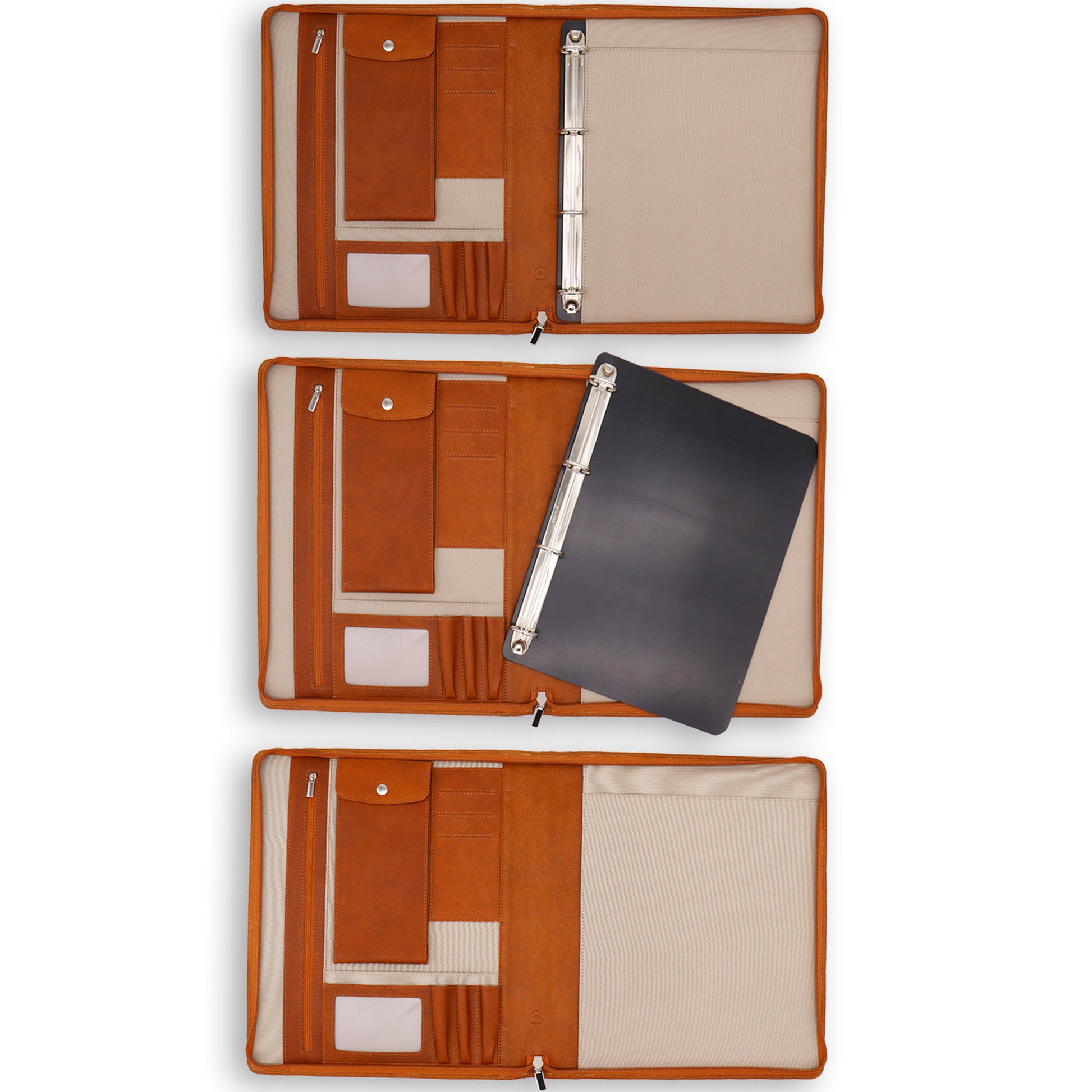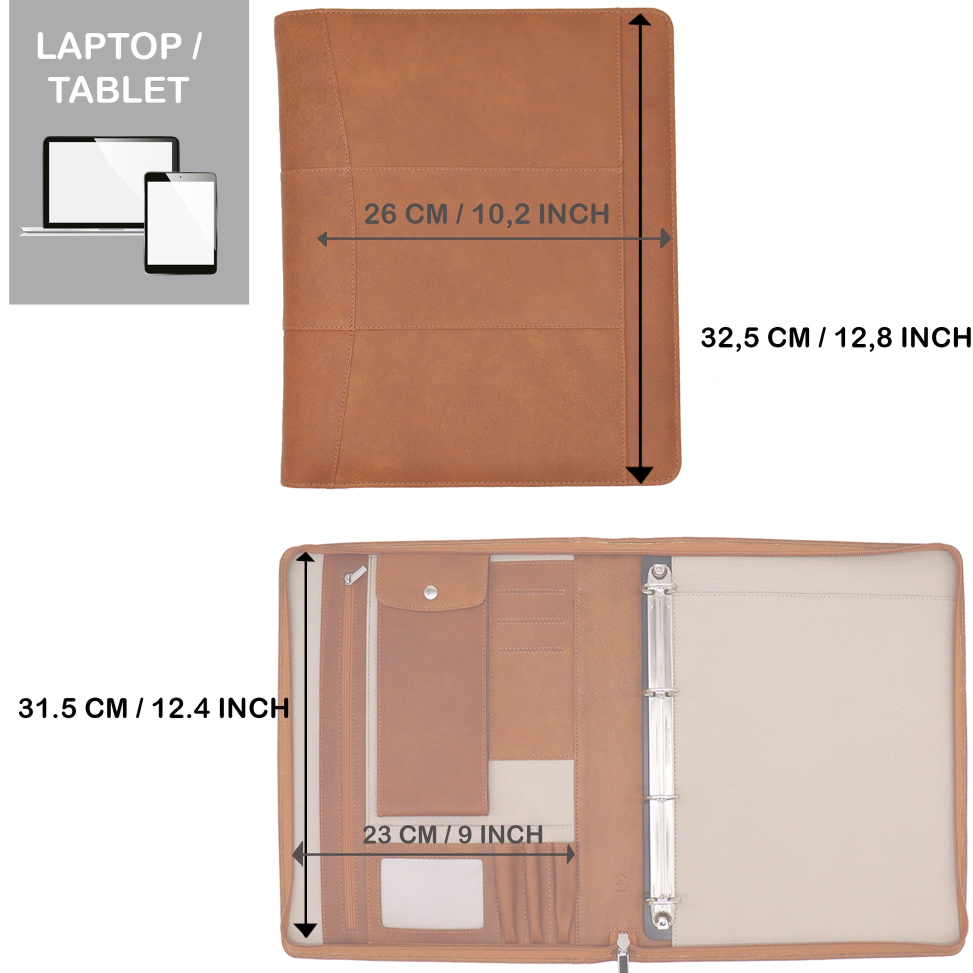Kwaliteit leren schrijfmap A4 met rits rondom, zodat jouw tablet (ipad) , documenten en telefoon veilig opgeborgen zijn.