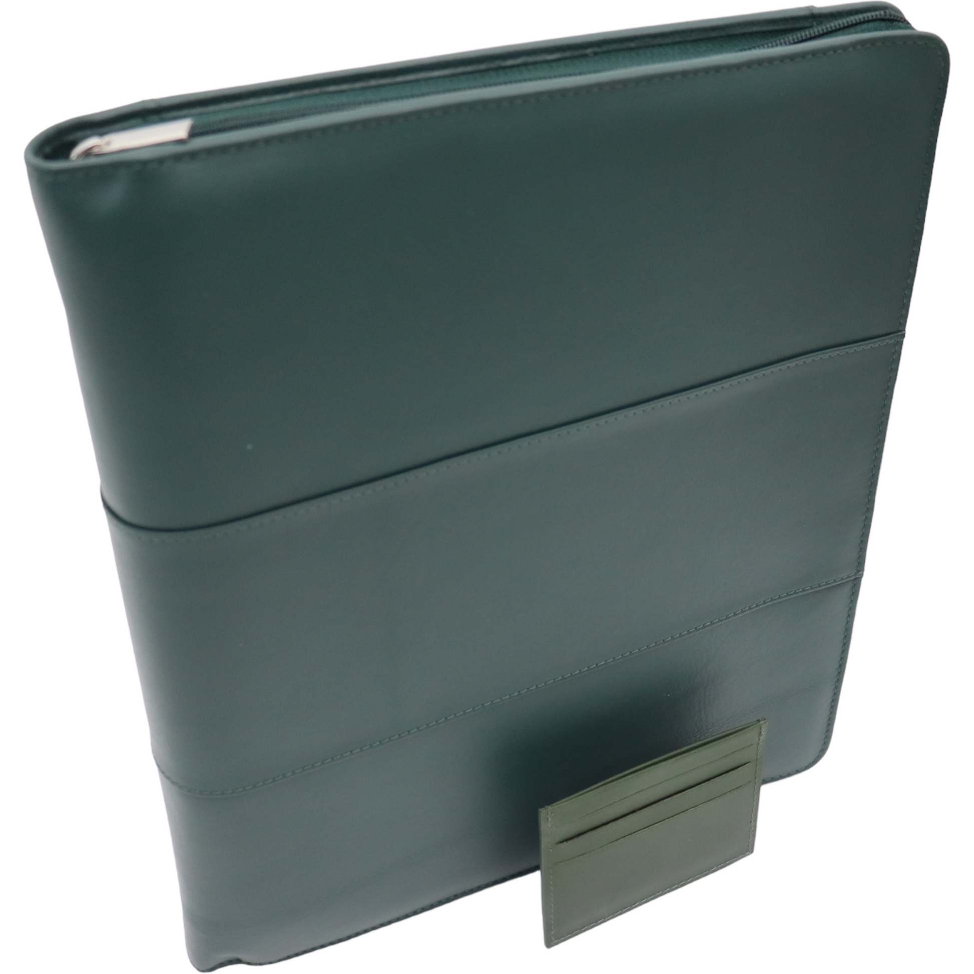 - Schrijfmap heeft Rits rondom Plaats voor 4 pasjes 3 sleuven voor pennen