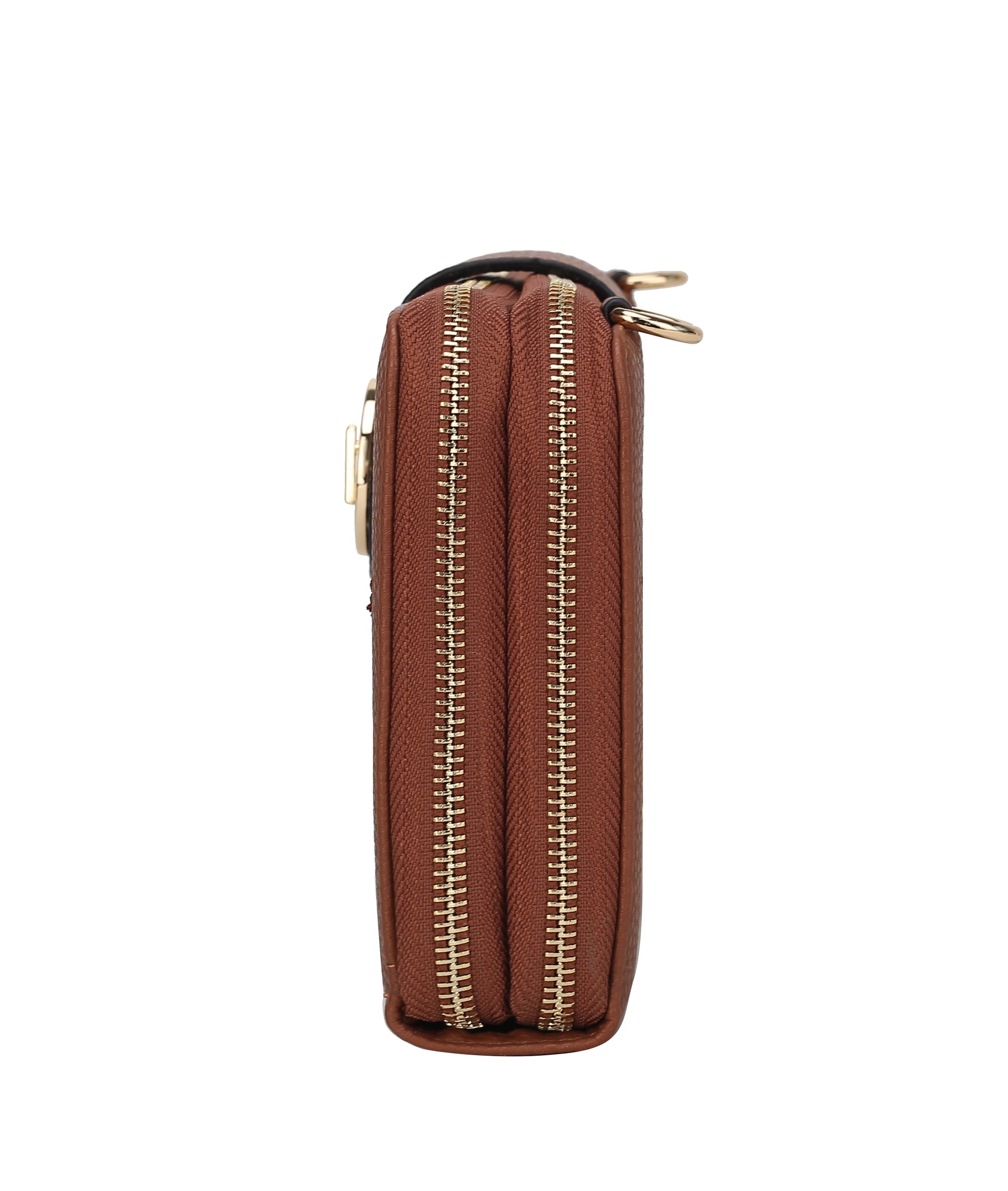 - For a casual day out or an evening to remember, our Sage Smartphone Wallet Convertible Crossbody Bag has you covered. Done in rich pebbled vegan leather with polished gold-tone hardware, this sleek wallet comes with an optional adjustable and removable crossbody strap. Unzips the first compartment to reveal multiple slots to organize all your cards, a slip pocket, and a snap pocket to safely store your phone. The second compartment has a center-divided zip compartment, cash slots, and two slip pockets for your essentials. A wristlet strap perfects its versatility factor, so it can be carried alone or in a tote.