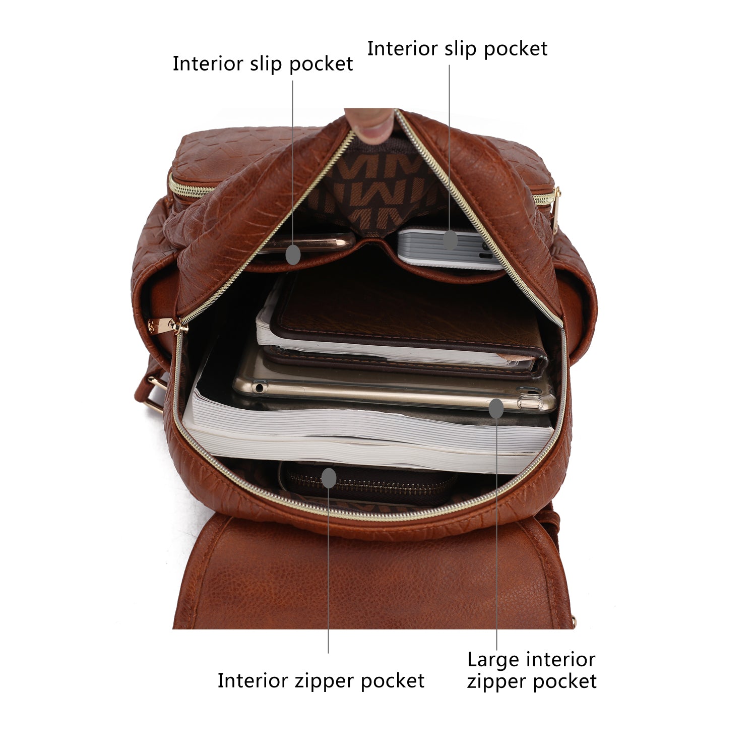 - POCKETS: Interior features a spacious compartment with two slip-in pockets and a wall zipper pocket