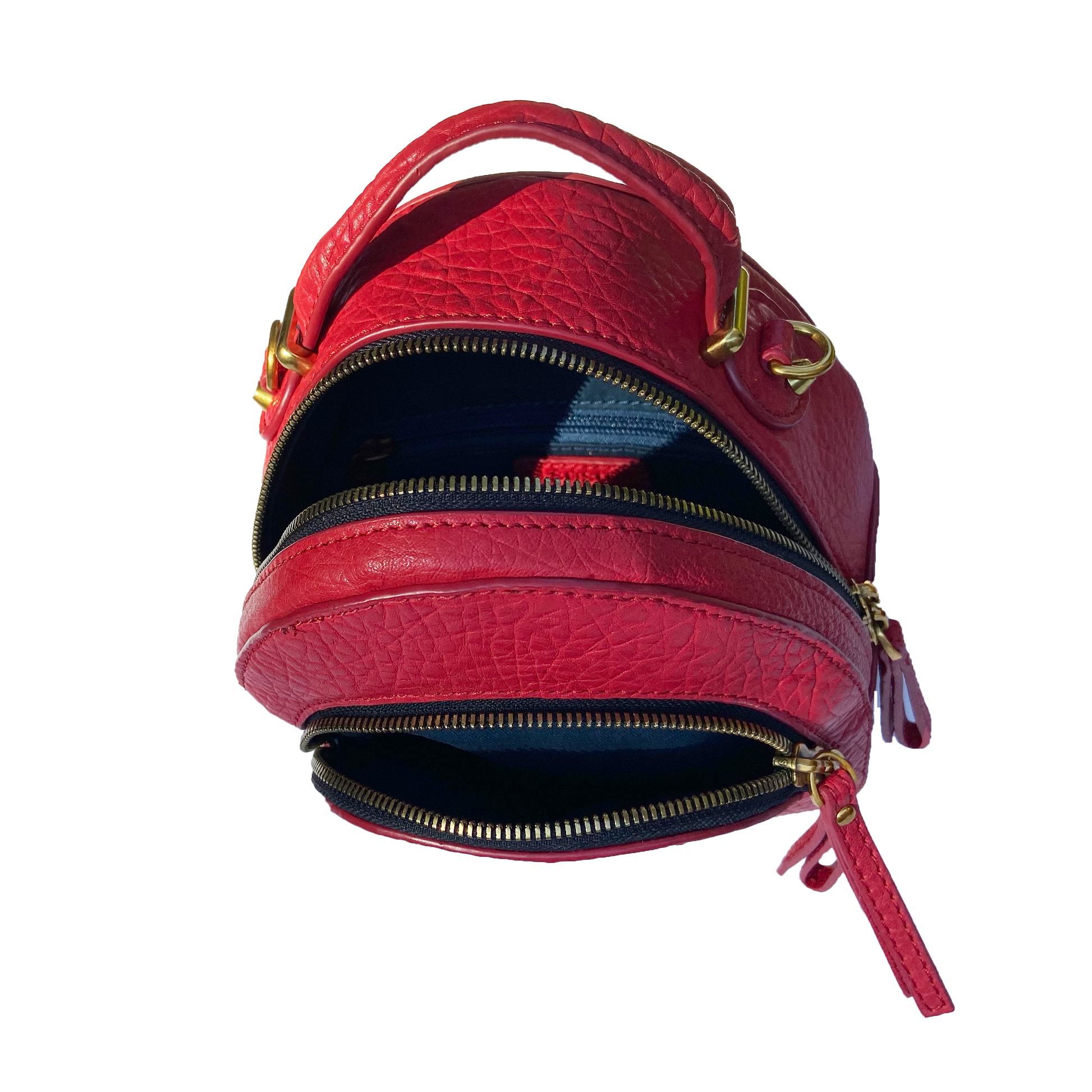 The San Francisco red leather backpack purse packs tons of style. Although small in size, this fashion backpack has multiple pockets for storage. Including 2 external pockets, 1 external front zipper pocket, and 1 back zipper pocket, you can fit all your needs. Made with luxury Italian leather and gold polished hardware, the stylish San Francisco is versatile for all your needs.
