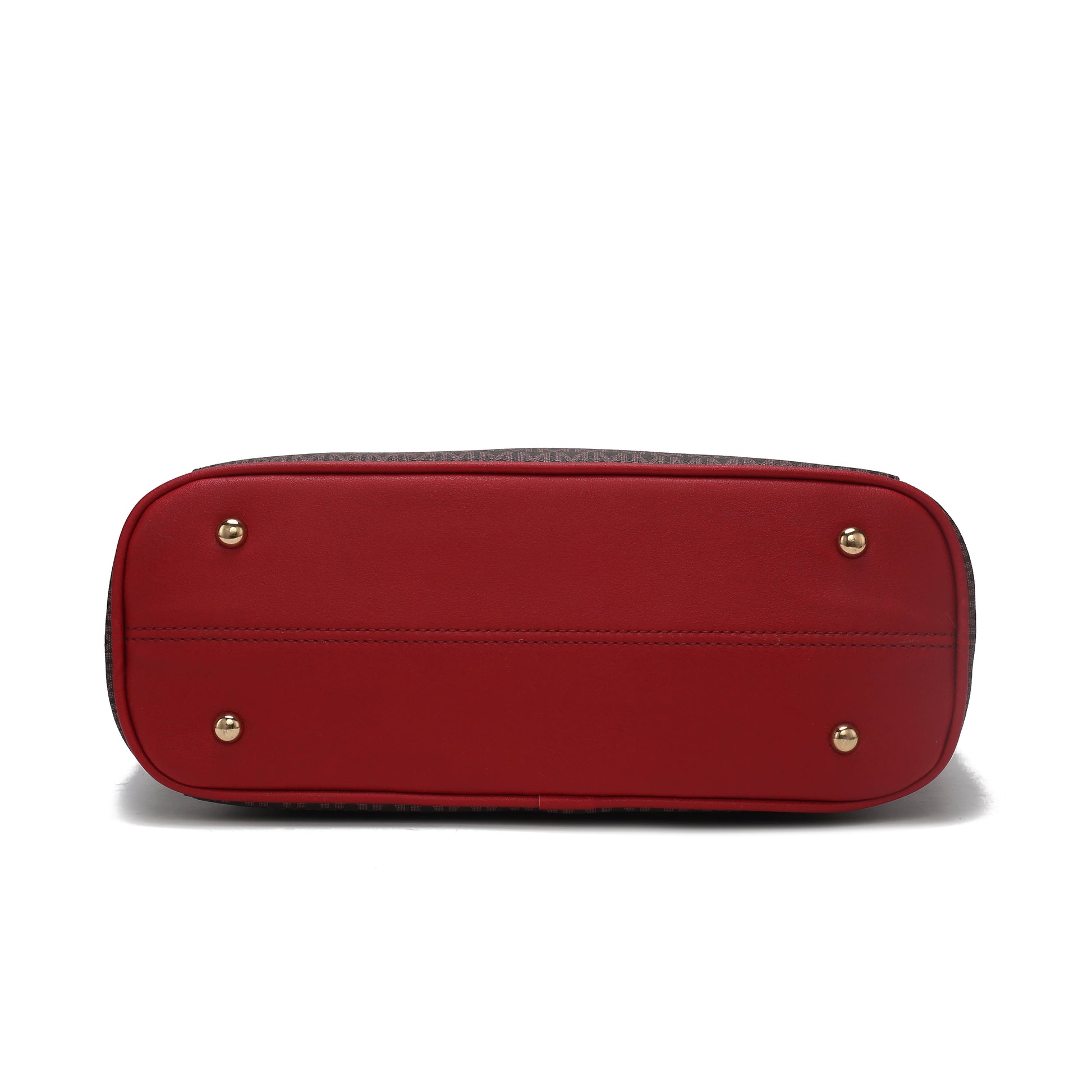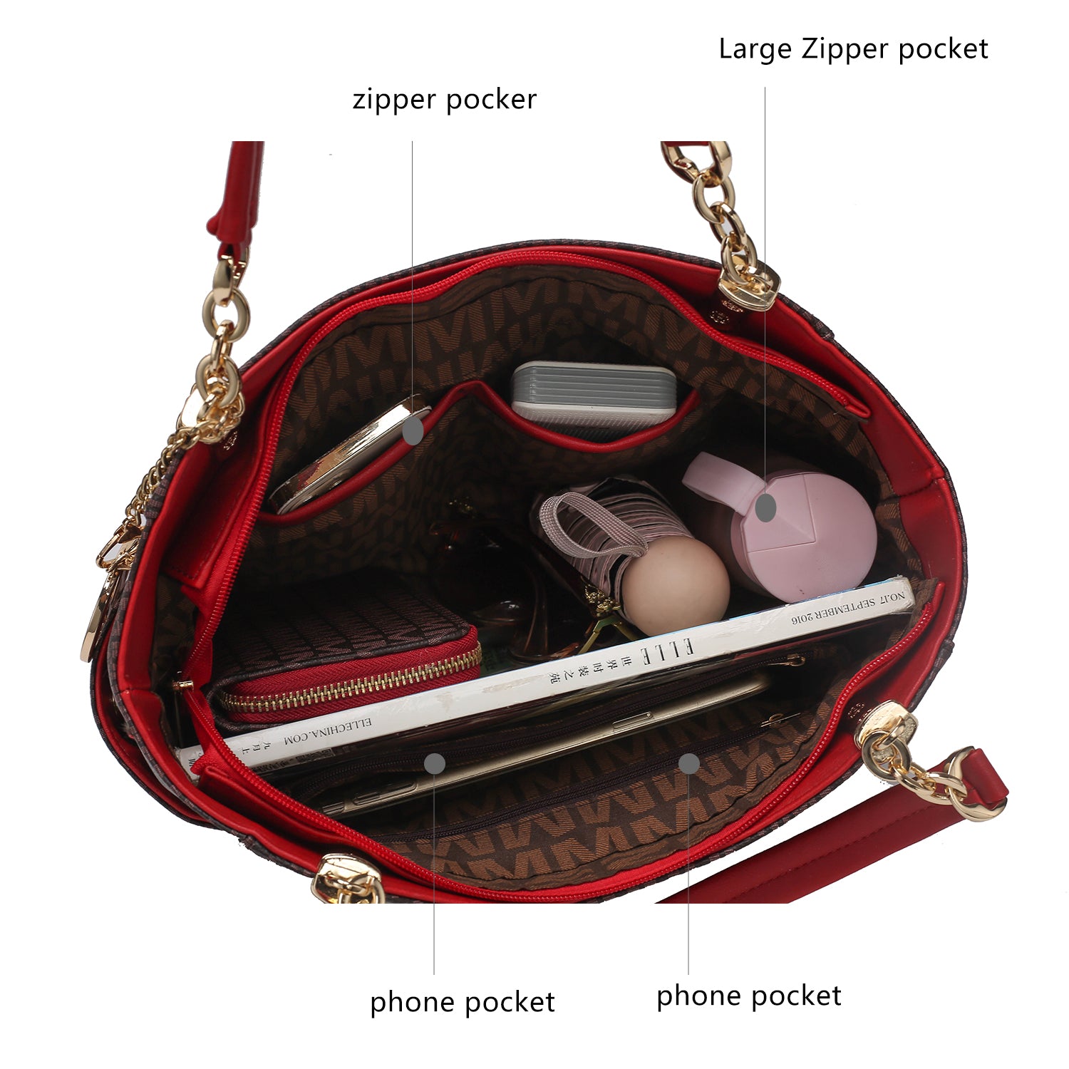 The bag is accented with gold-tone hardware, adding a touch of opulence to its overall design. The metallic finish not only complements the printing but also serves as a chic contrast against the bag’s main material. The gold-tone hardware includes sturdy zippers, durable metal feet to protect the base, detachable keychain with our round M emblem, and stylish embellishments on the handles, creating a cohesive and refined look.