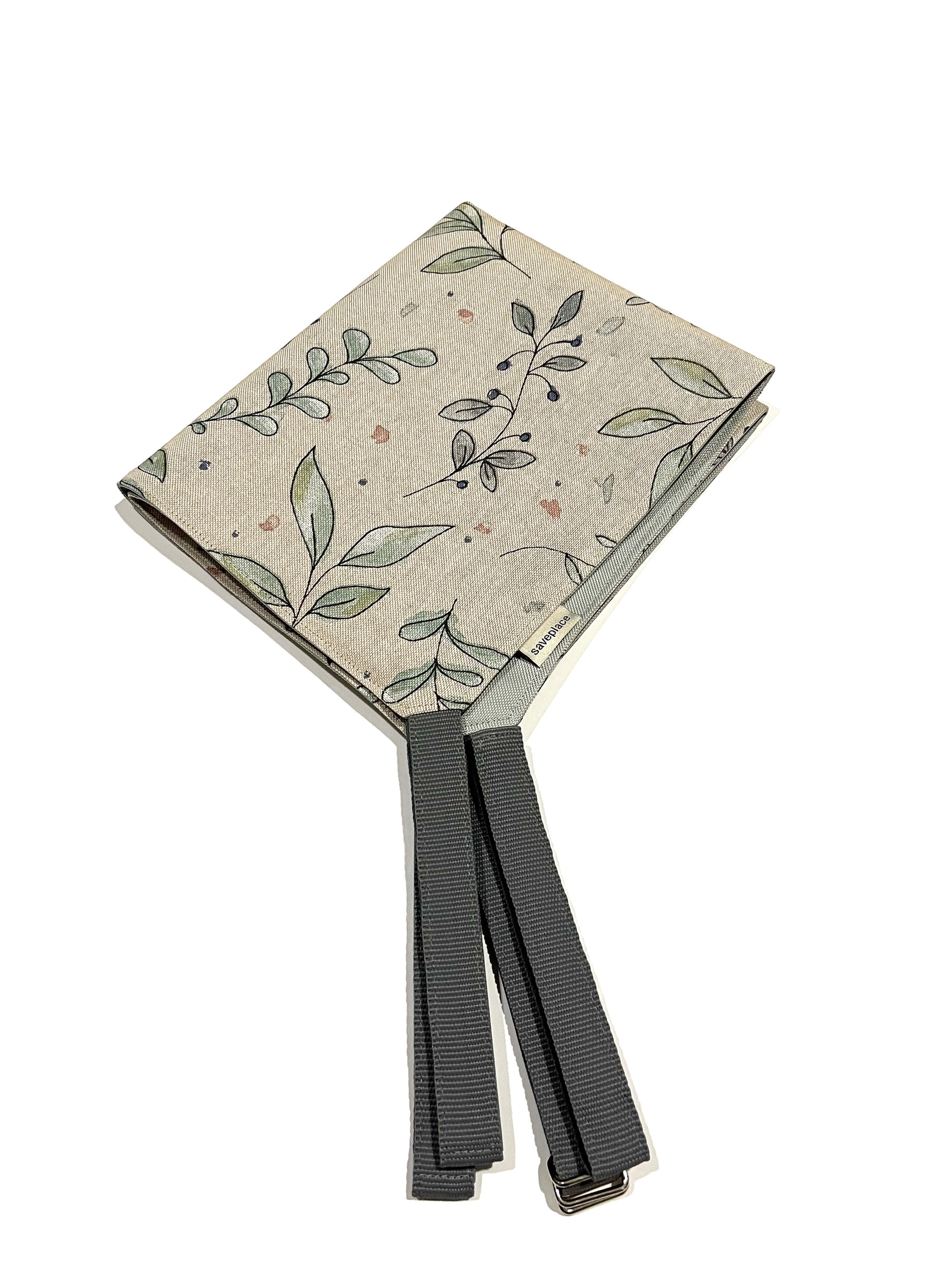 Upper side - 80% cotton, 20% polyester; bottom - light grey waterproof fabric.